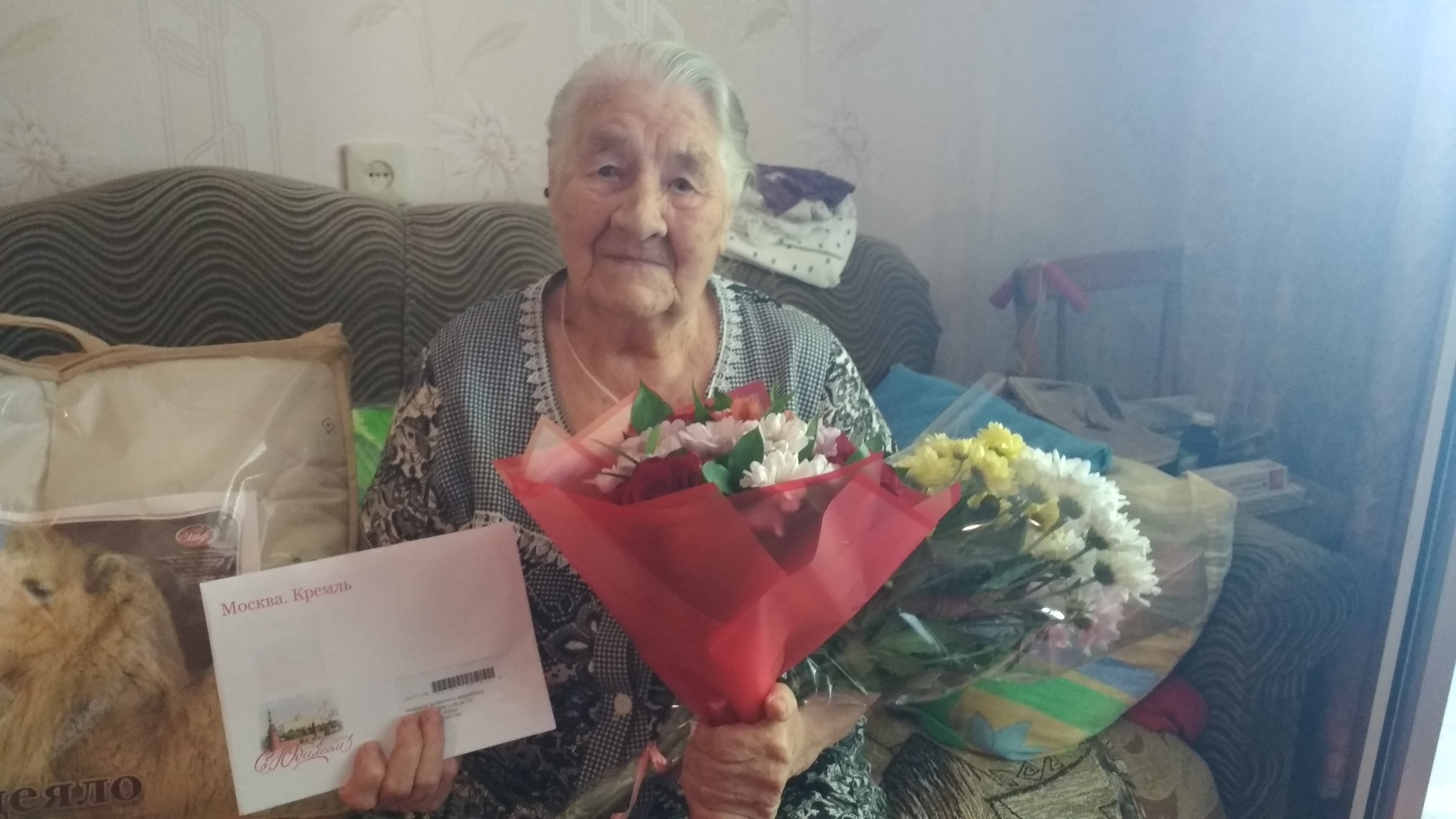 90 лет исполнилось ветерану Великой Отечественной войны – Надежде Дмитриевне Лободе. Поздравления и подарки от имени Президента РФВладимира Путина, мэра города Набережные Челны Наиля Магдеева и от себя лично юбиляру вручила заместитель главы администрации Комсомольского района Эльвира Валиева.
