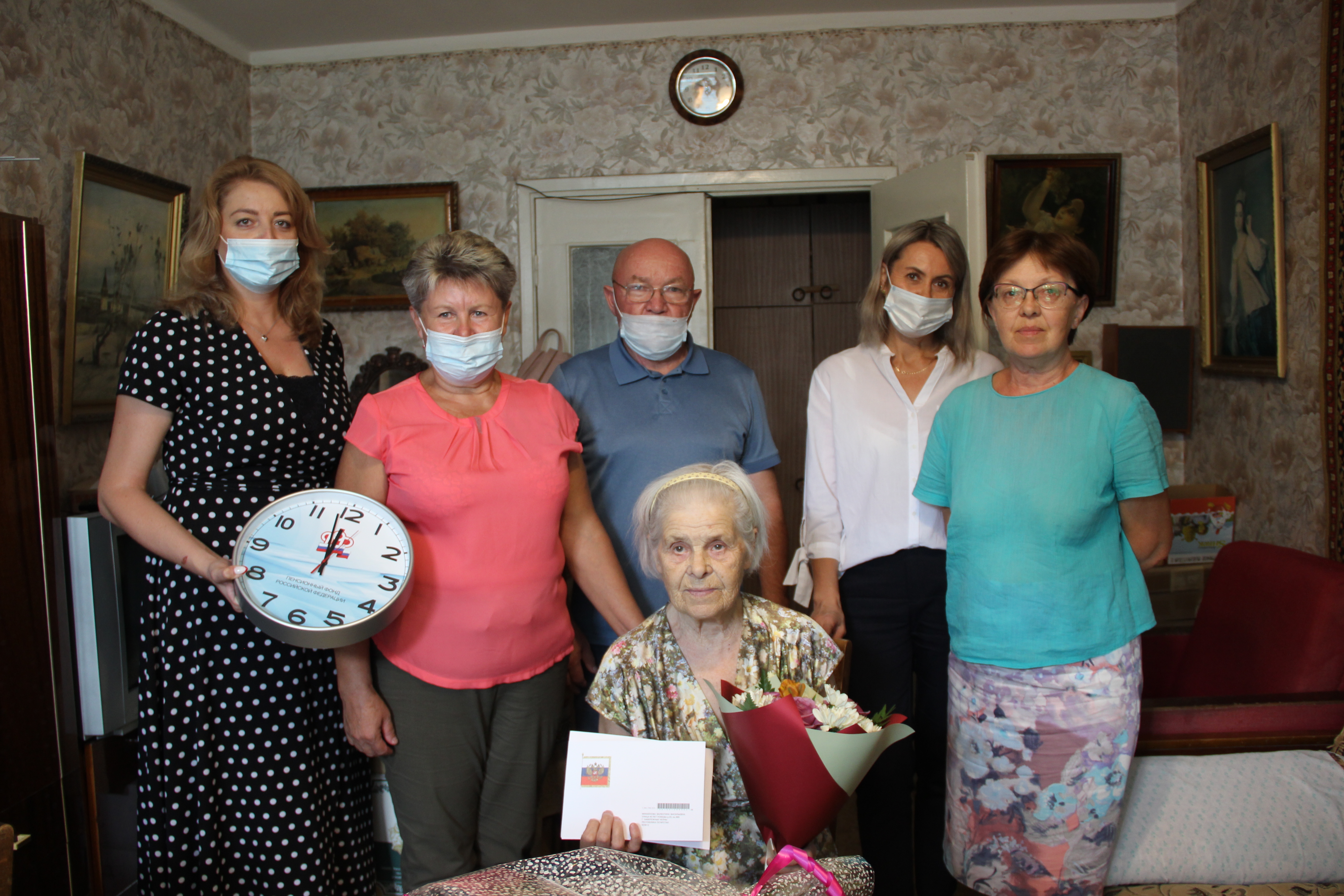 От имени Президента РФ Владимира Путина, мэра города Наиля Магдеева, главы администрации Центрального района Искандера Галимовапоздравления с юбилеем получили ветераны Великой Отечественной войны Халида Габдулловна Галимова, Валентина Васильевна Михайлова. К поздравлениям присоединились Депутат Городского Совета Эдуард Фаттахов, заместитель генерального директора УК "Электротехников" Вячеслав Карпов, а также председатель ТОС Рауза Хайрутдинова.