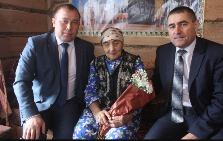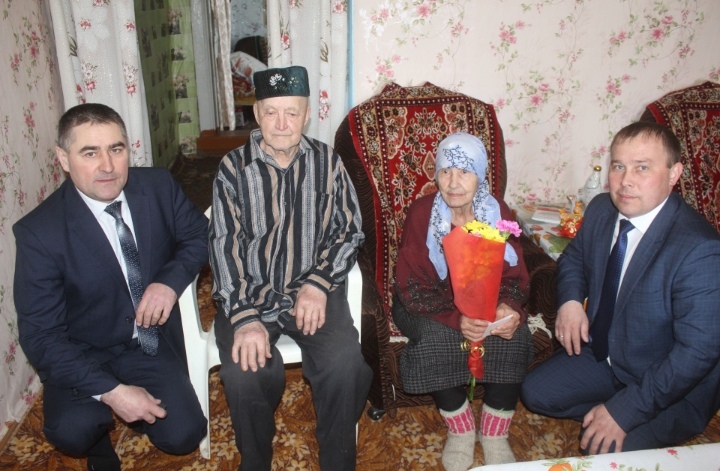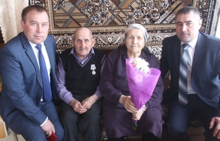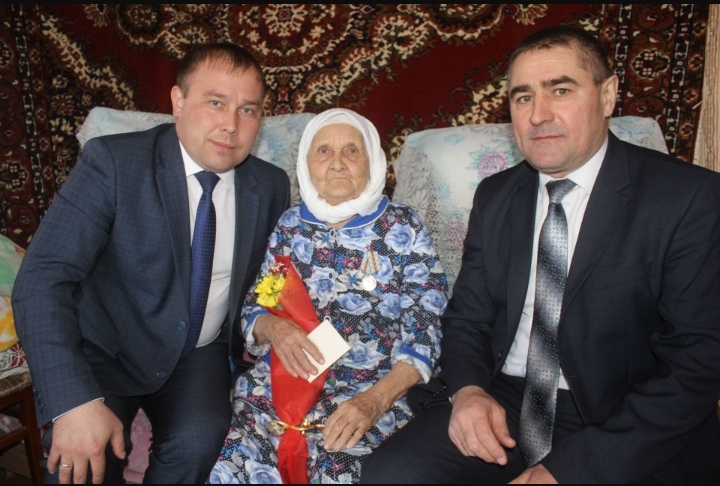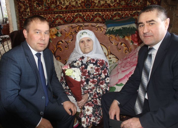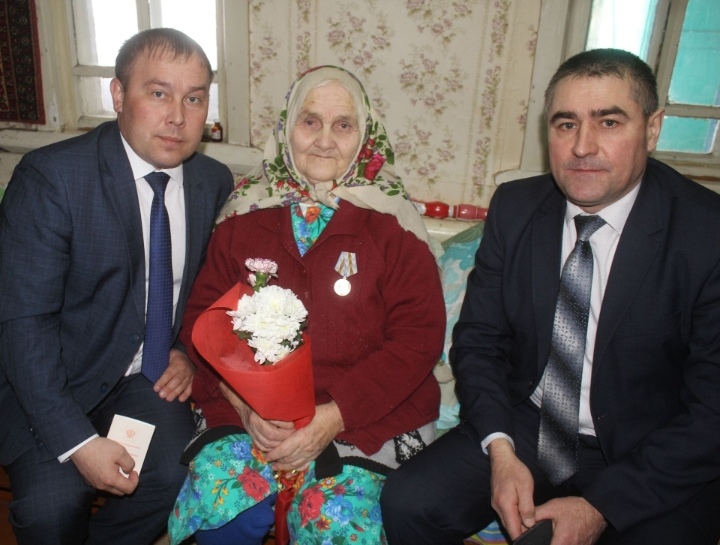 Награды на дому вручили руководитель Исполкома Данис Сатдинов и глава сельского поселения Илгам Бикчуров.
