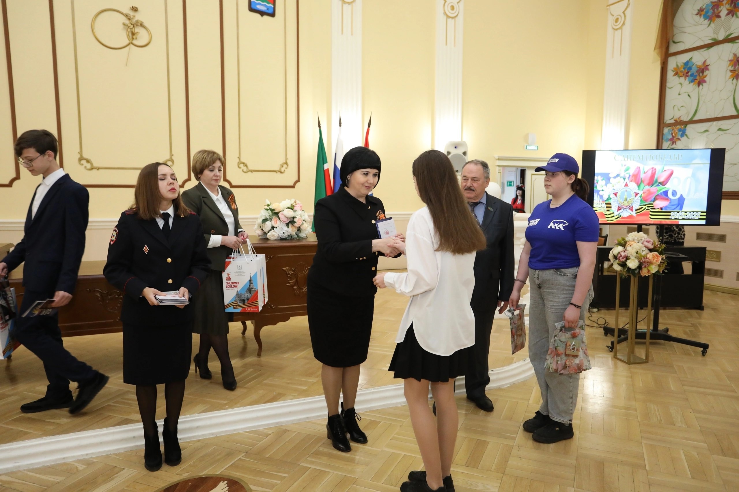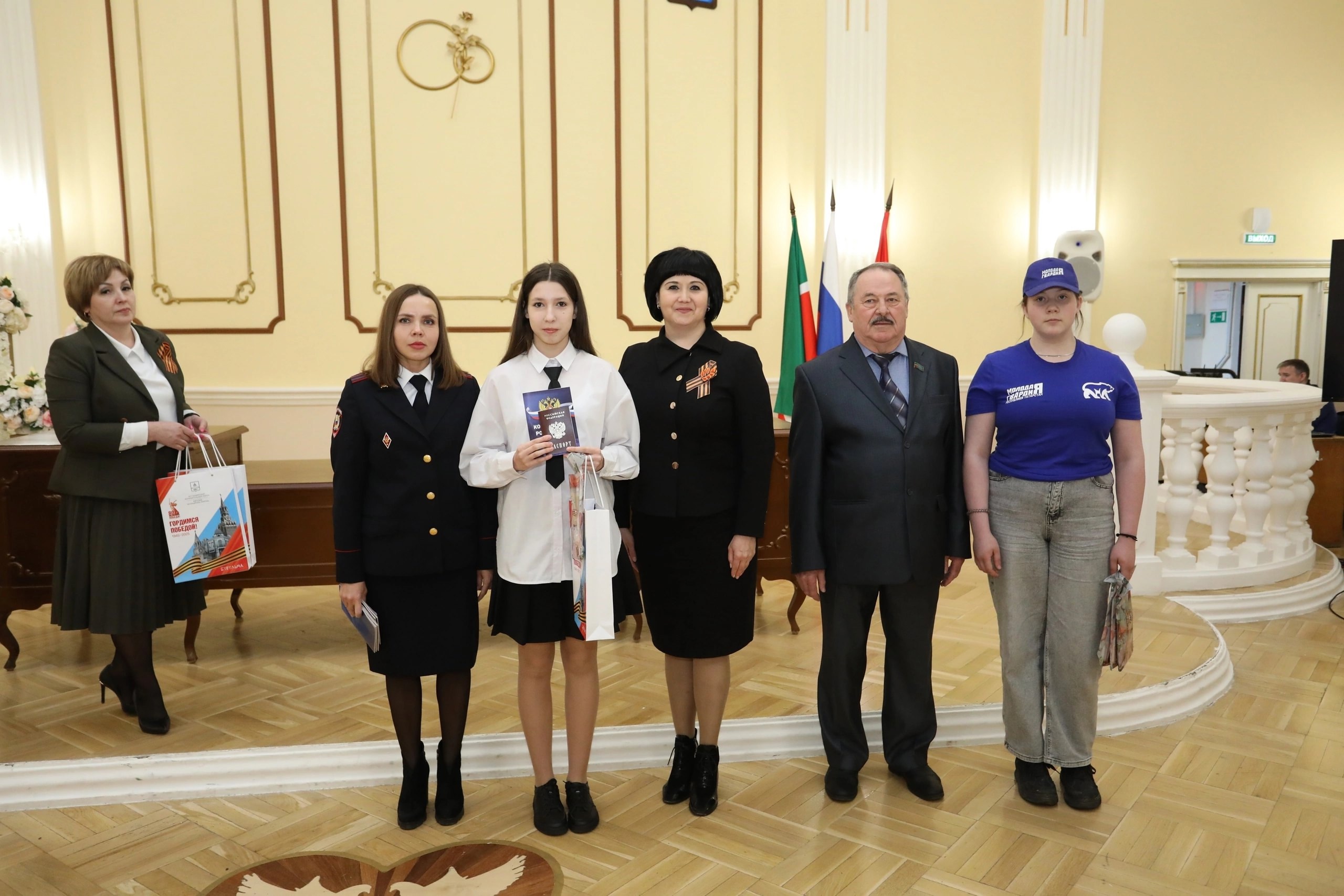 Главный документ ребятам вручали почетные гости мероприятия - заместитель мэра города Бугульмы Ирина Белова, заместитель начальника отдела по вопросам миграции ОМВД России по Бугульминскому району, майор полиции Татьяна Маркова и исполнительный секретарь местного отделения партии Единая Россия Анвар Ахмадеев.