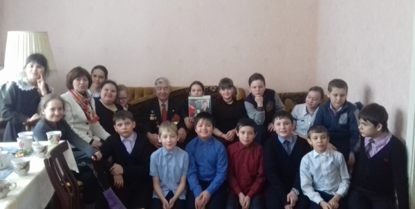 Его гостеприимство, когда мы пришли к нему домой, удивило нас: радушно встретил, напоил чаем, долго беседовал, отвечая на все вопросы детей. В конце встречи ребята поблагодарили ветерана и сфотографировались с ним на память.