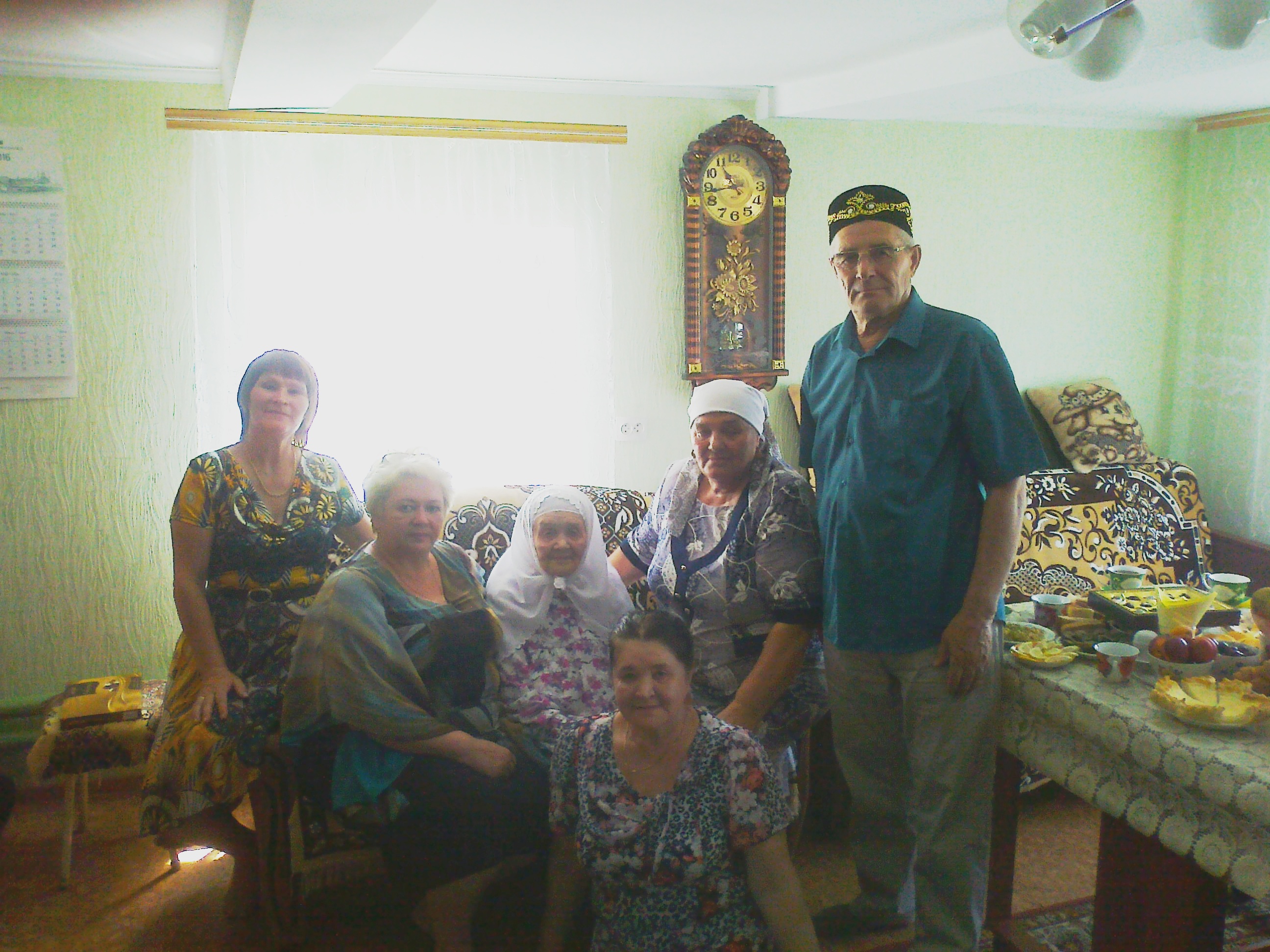 Вручить поздравительные открытки от Президента Российской Федерации Владимира Путина и главы района Владимира Козонкова, а также подарочный набор и продуктовый пакет Зайнап Закировой пришли заместитель руководителя исполнительного комитета Алексеевского района по социальным вопросам Николай Чурин, начальник отдела социальной защиты населения Елена Хамзина, председатель Совета ветеранов района Николай Глазунов и председатель исполнительного комитета Мокрокурналинского сельского поселения Фирдаус Хайрутдинова.