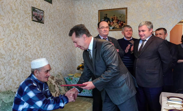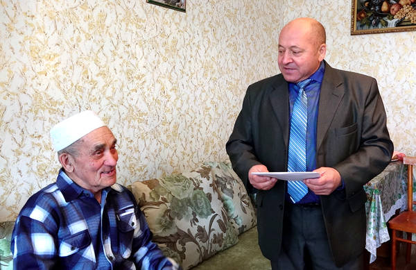 Заместитель главы Азнакаевского муниципального района Н.М.Нагимов поздравил с 90-летием Шамсутдинова Фазыла Кашфутдиновича