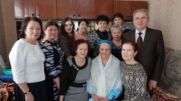 Заместитель руководителя исполнительного комитета по социальным вопросам Д.Р.Гилязов поздравил с 90-летием Гараеву Сагадат Габделбариевну