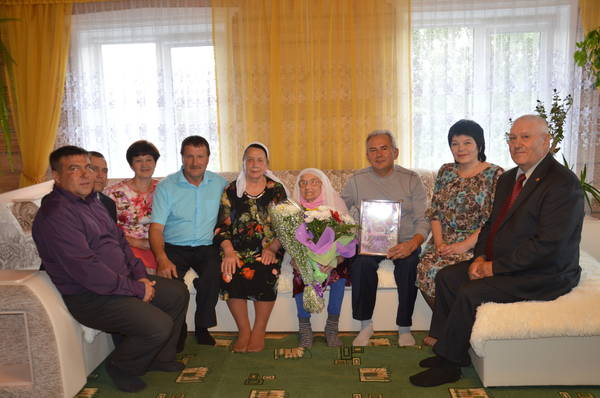 Хасаншину Янателасму Загидулловну с юбилеем поздравил заместитель Главы по социальным вопросам Гилязов Д.Р. пожелал ей крепкого здоровья, долгих лет жизни. Хасаншина Янателасм Загидулловна живет с детьми, нянчит внуков. В этот праздничный день пришли ее поздравить родные и близкие.