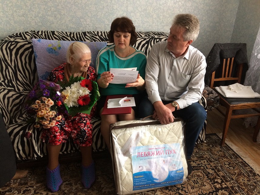 Зинаиде Георгиевне были вручены цветы, памятные подарки и поздравления от Президента РФ В.В. Путина.