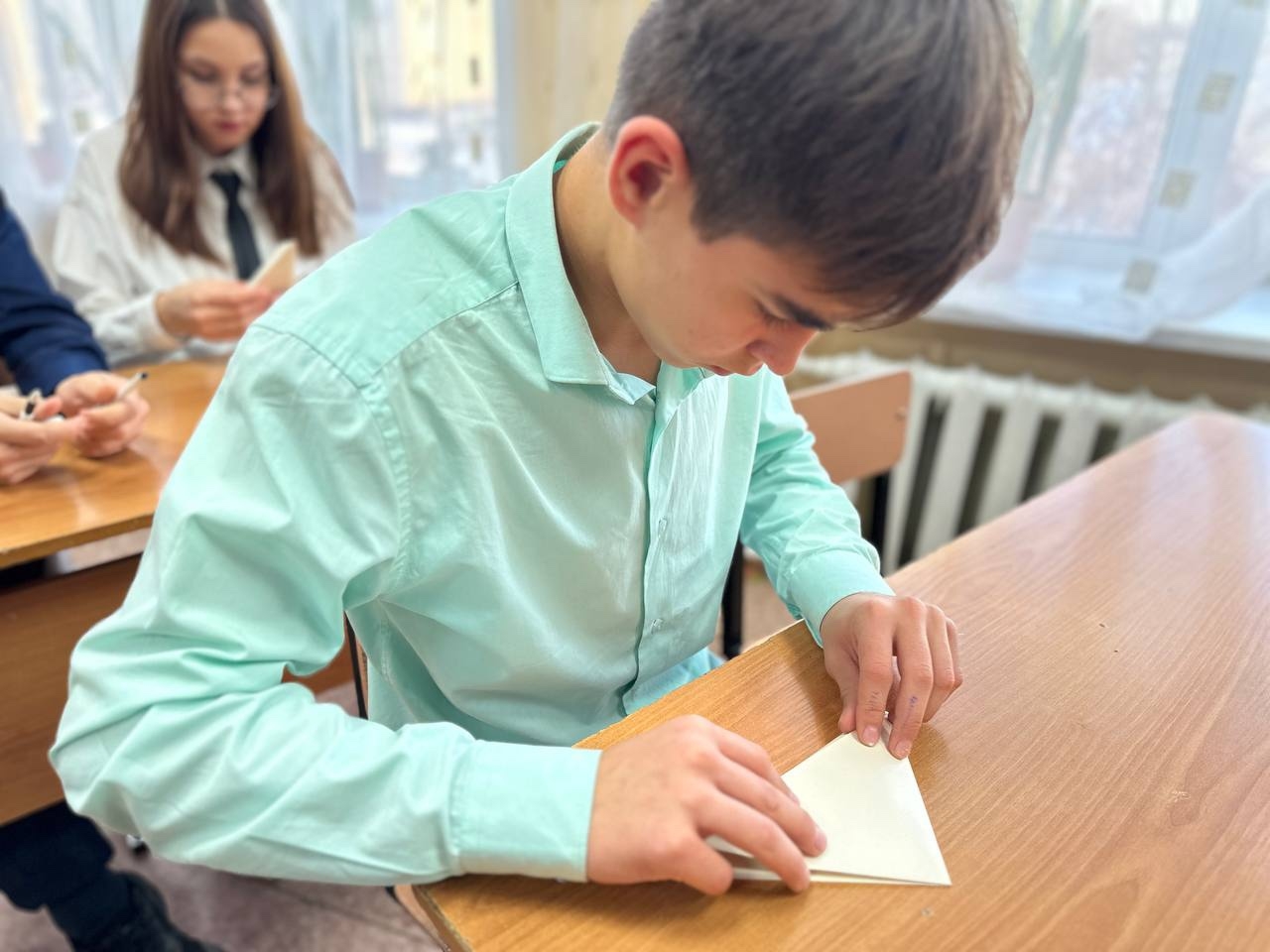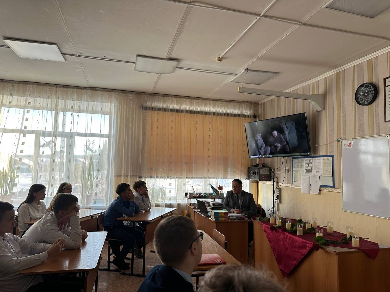 Рамиль Курмашев, бывший выпускник Малобугульминской школы, побывавший в зоне СВО с первых её дней, очень коротко, но ёмко и доходчиво повествовал о боевом пути и военном опыте. Участники встречи смогли многое понять, как бы читая между строк его рассказа, о том, что пришлось пережить этому молодому человеку, побывавшему в "котле" и в течении 20 дней значившегося в числе попавших в плен к противнику. В заключении своего рассказа Рамиль напутствовал ребят: "Учитесь хорошо, ребята, и слушайте своих учителей". Как-то иначе, чем просто слова, восприняли его пожелание ребята - не было усмешек и неуместных улыбок. Все были по-особенному серьезны и молчаливы. На Уроке мужества девятиклассники написали письма нашим бойцам, которые исполняют в настоящее время святой воинский долг на СВО. Письма будут переданы в Центр развития добровольчества с целью доставки на фронт. Завершилась встреча возложением цветов к мемориальной доске Соловьёва С.В., установленной на стене Малобугульминской школы, также бывшего её выпускника, награжденного орденом Мужества за героизм, проявленных в ходе специальной военной операции, посмертно.