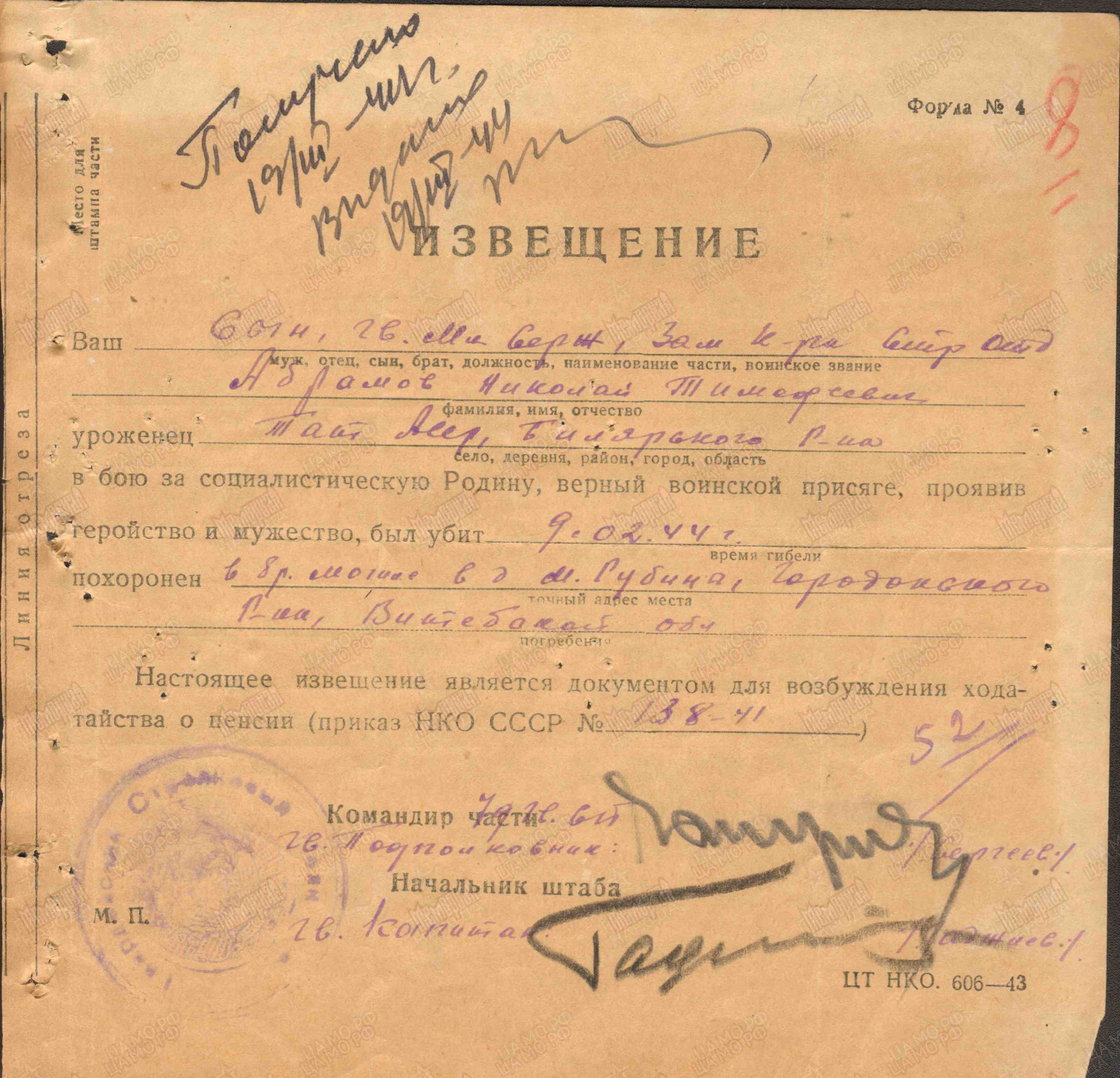 АБРАМОВ НИКОЛАЙ ТИМОФЕЕВИЧ