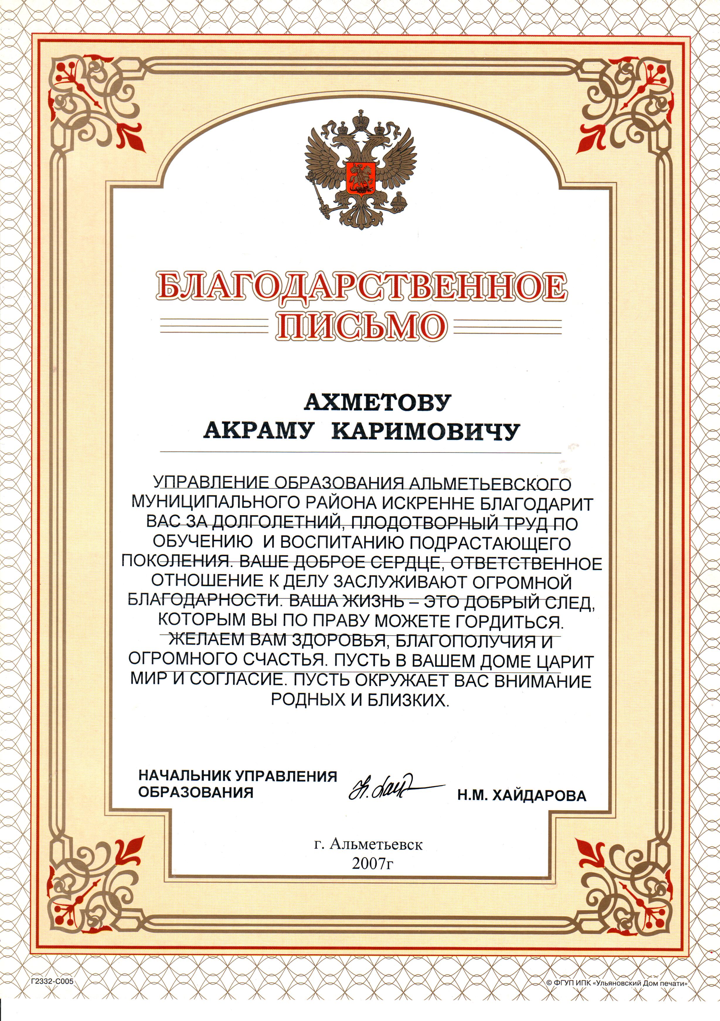 Акрам Каримович более 25 лет отдал военно-патриотическому воспитанию подрастающего поколения, ветеран труда, пользовался большим уважением в коллективе.