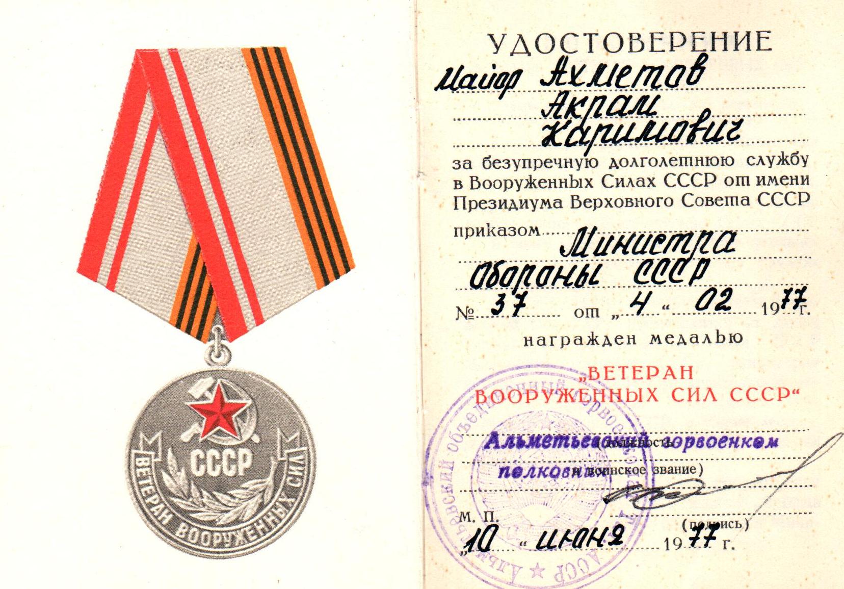 5. Медаль «Ветеран Вооруженных Сил СССР» (1977 г.),
