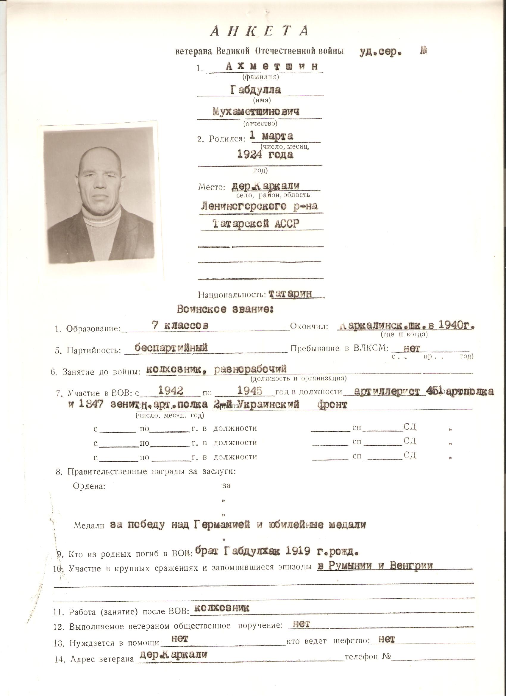 АХМЕТШИН ГАБДУЛЛА МУХАМЕТШИНОВИЧ
