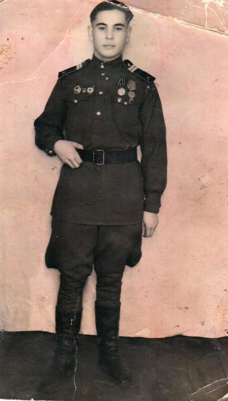 В 1944г. по повестке 17 летний парень явился в Буинский военкомат. Эшелоном отправили в Ульяновскую область, затем в Вильнюс на Прибалтийский фронт. После 3-х месячного обучения получил звание младшего сержанта. Всю войну прослужил в Прибалтийской Гвардейской механизированной дивизии.