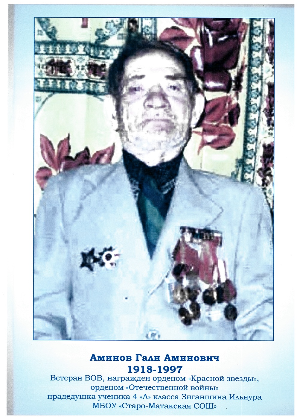 Ветеран Великой Отечественной войны. (Материал подготовлен Староматакским сельским поселением)