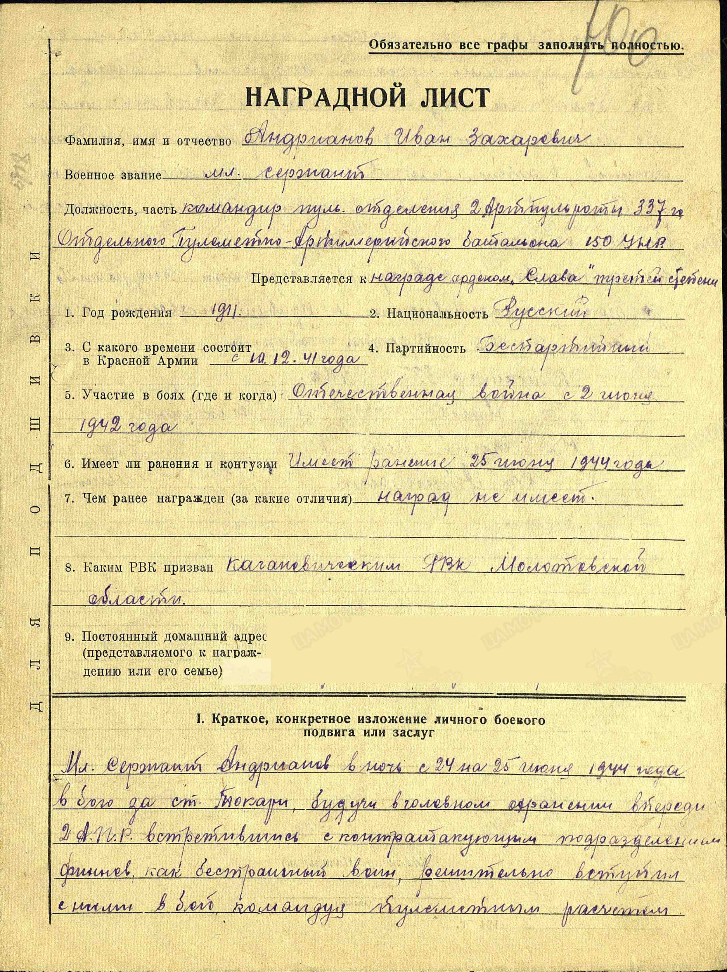 АНДРЕЯНОВ (АНДРИАНОВ) ИВАН ЗАХАРОВИЧ
