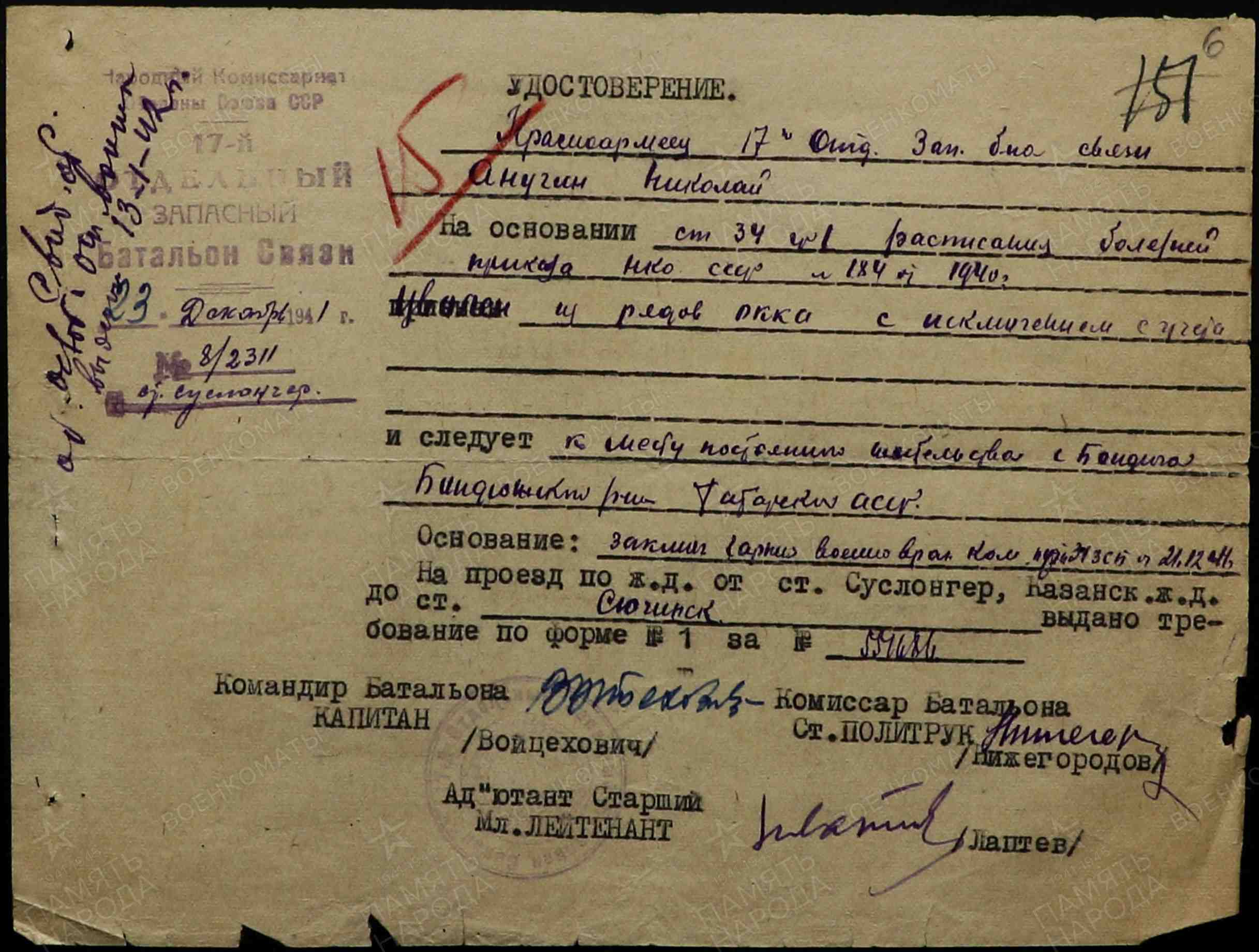 Родился в 1902 г. Работал в системе почтовой связи. Мобилизован Бондюжским районным военкоматом в 1941 г. 14 запасная техническая бригада; 17 отдельный запасной батальон связи. Демобилизован в 1945 г.