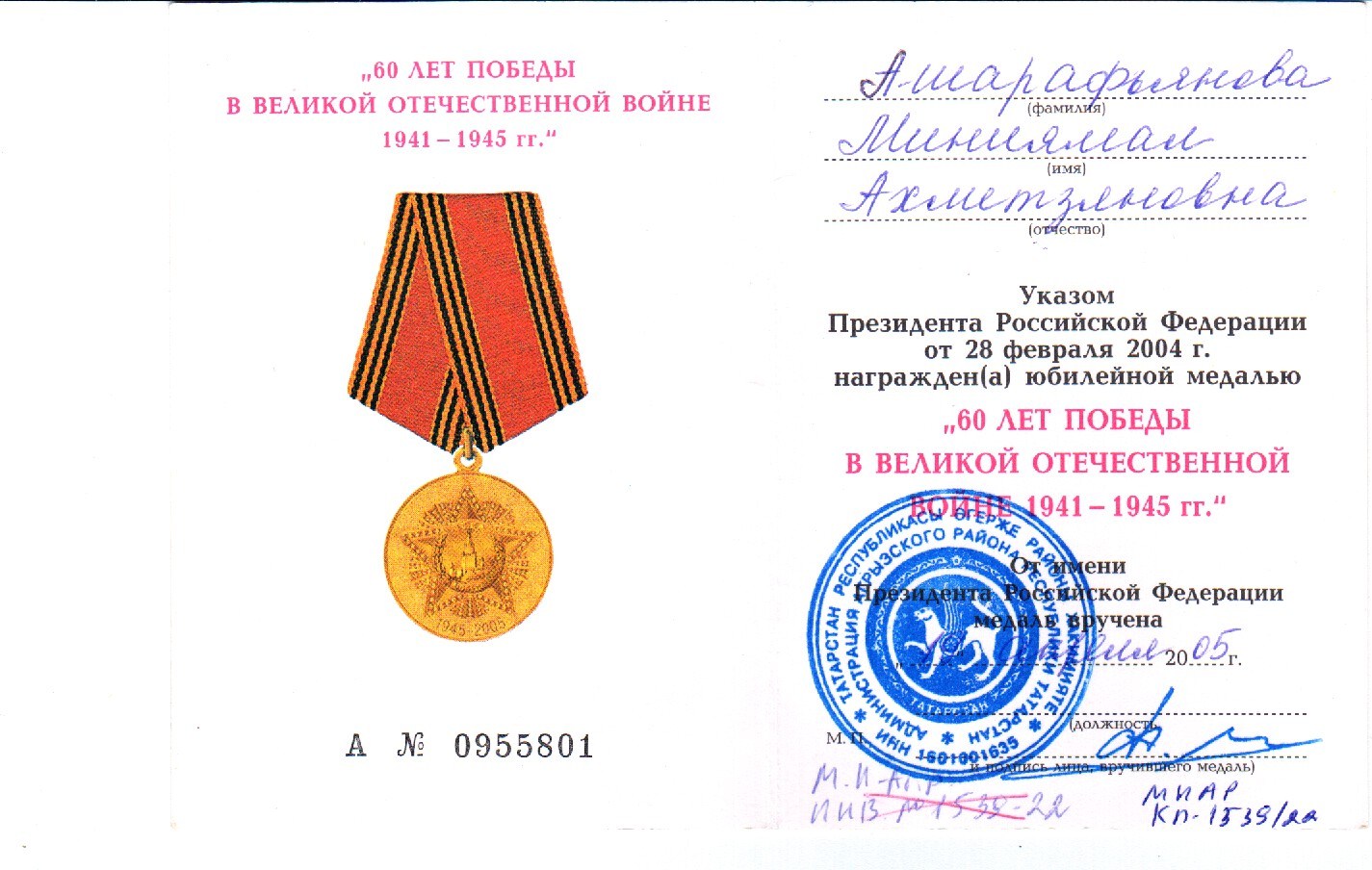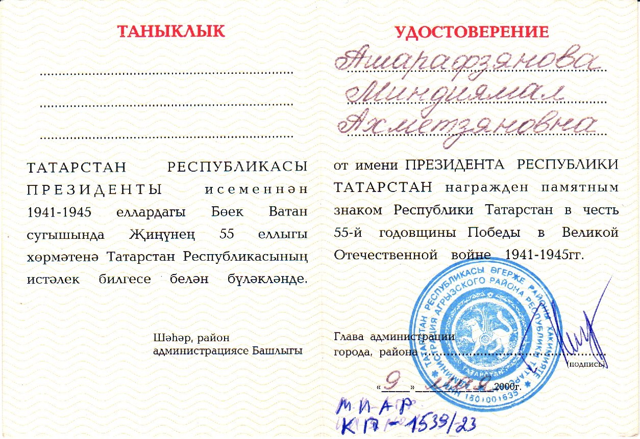 АШАРАФЬЯНОВА МИНДИЯМАЛ АХМАДЬЯНОВНА
