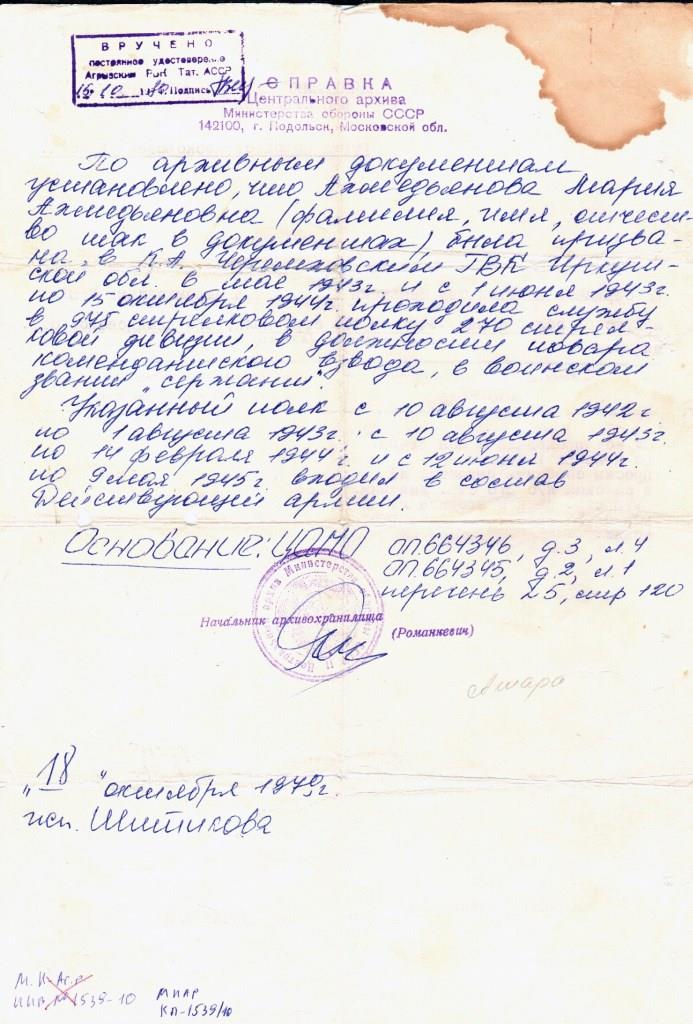 Родилась 10 июня 1922 года в деревне Яубуляк Салаватского района Башкирии. В 1937 году закончила 4 класса средней школы деревни Яубуляк. В начале войны работала санитаркой-буфетчицой в больнице города Черемхово Иркутской области. В июне 1942 года поступила на курсы поваров в городе Чита. В мае 1943 года Черемховским ГВК Иркутской области была призвана в ряды Советской Армии. С 1 июня 1943 года по 15 октября 1944 года проходила службу в 975 стрелковом полку 270 стрелковой дивизии в должности повара комендантского взвода в военном звании "сержант". Указанный полк с 10 августа 1942 года по 1 августа 1943 года, с 10 августа 1943 года по 14 февраля 1944 года и с 12 июня 1944года по 9 мая 1945 года входил в состав Действующей Армии. В составе Действующей Армии она прошла Украину, Белоруссию, Польшу. В одном из боев получила контузию, лечилась в госпитале города Витебска. После лечения, снова вернулась на фронт. В феврале 1944 года вступила в ряды КПСС, а в августе 1944 года Парткомиссией 270 Демидовской стрелковой дивизии была избрана членом КПСС. День Победы встретила в Белоруссии.