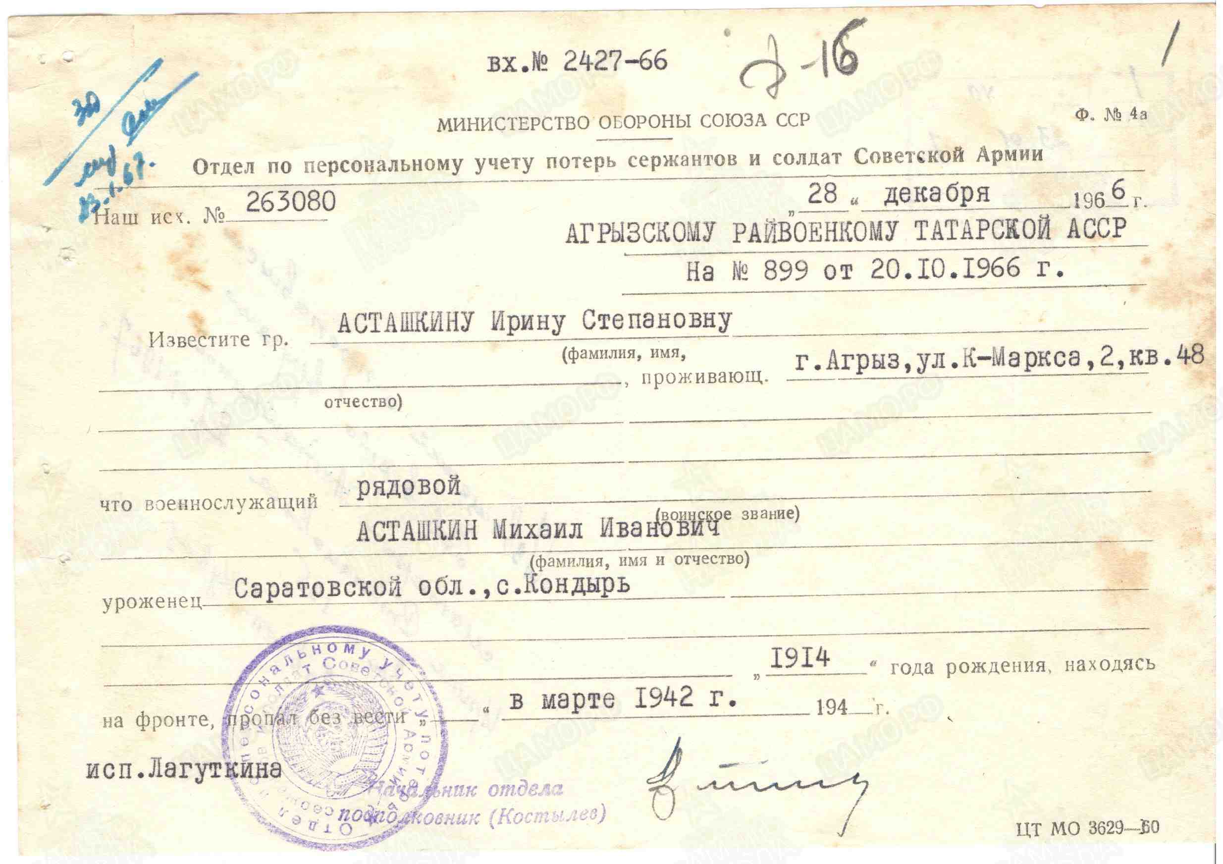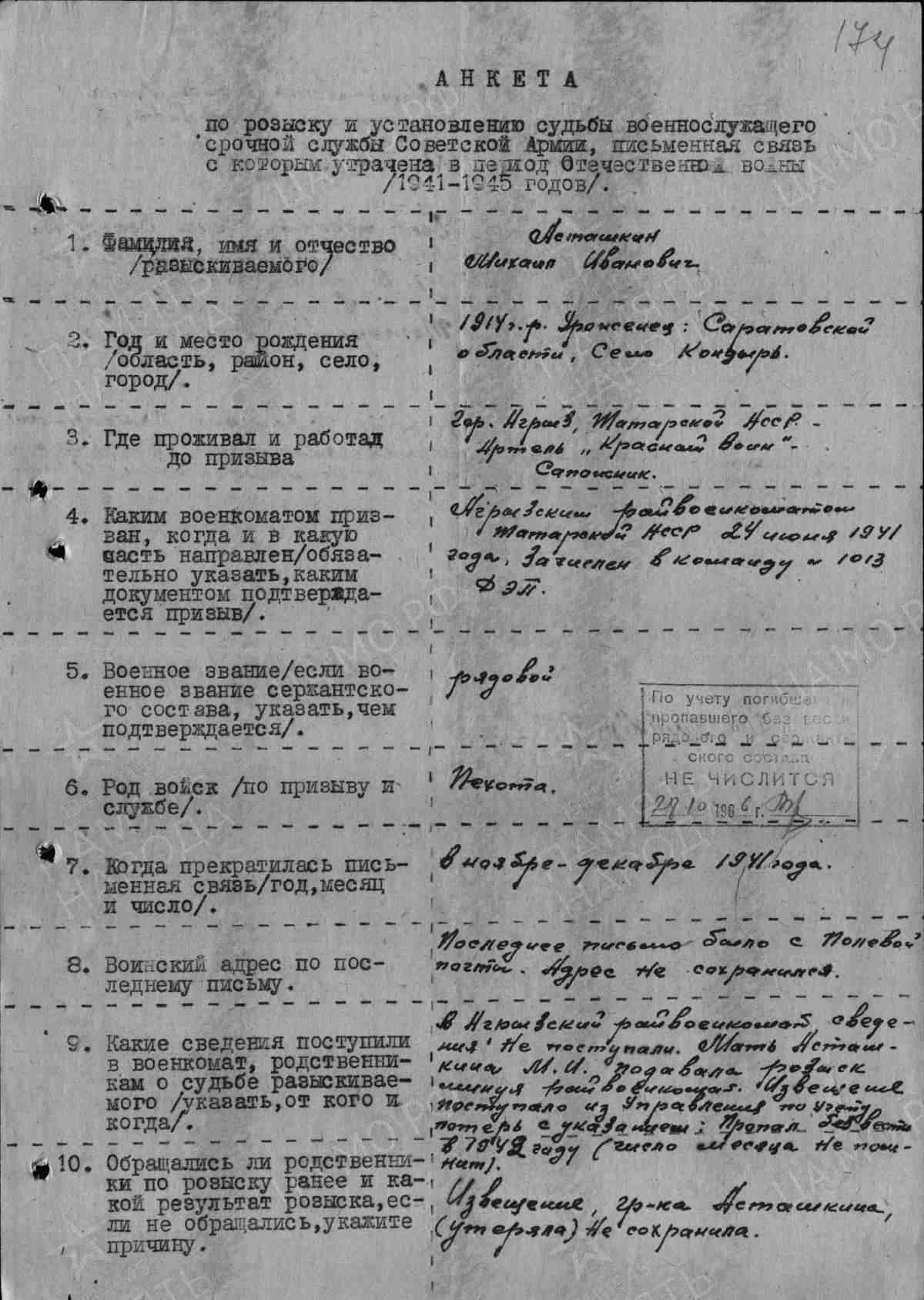 АСТАШКИН МИХАИЛ ИВАНОВИЧ