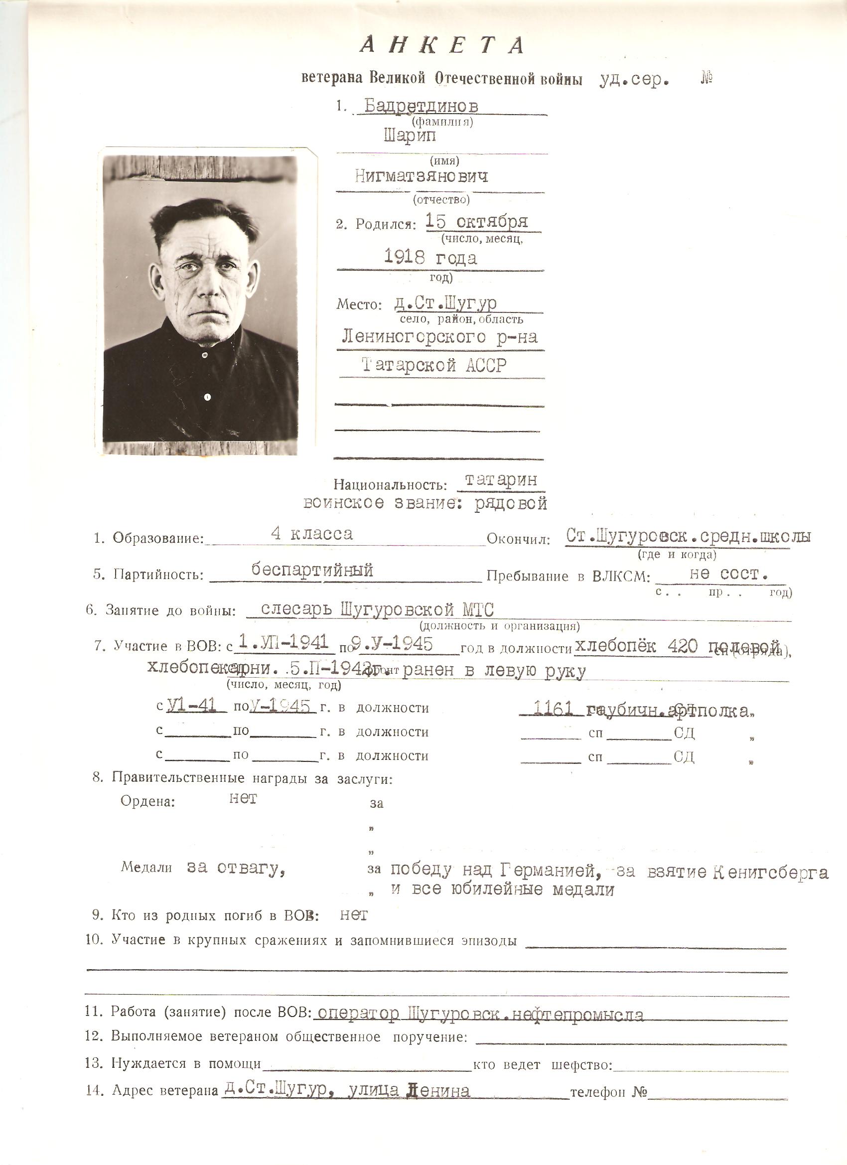 БАДРЕТДИНОВ ШАРИП НИГМАТЗЯНОВИЧ