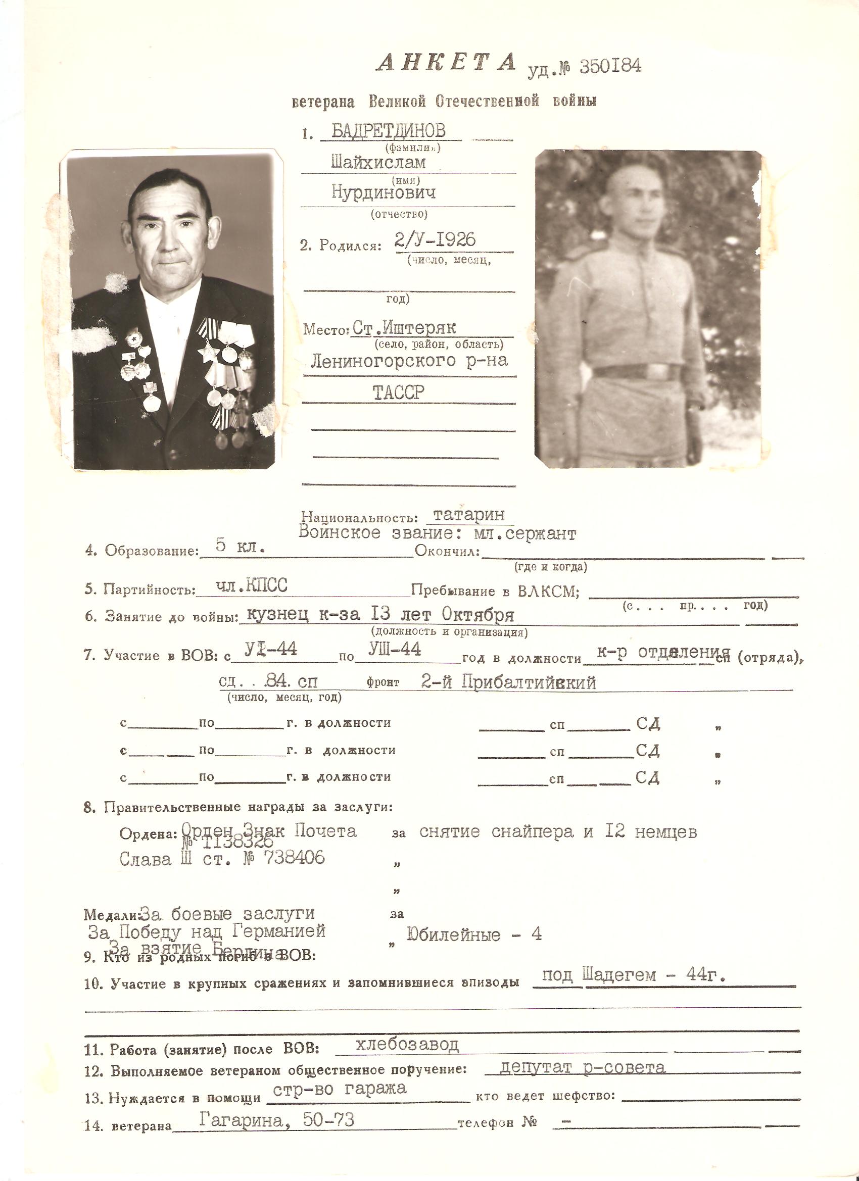 БАДРЕТДИНОВ ШАЙХИСЛАМ НУРТДИНОВИЧ