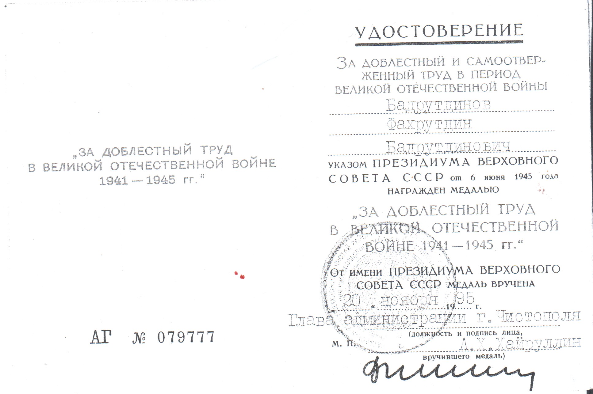 БАДРУТДИНОВ ФАХРУТДИН БАДРУТДИНОВИЧ