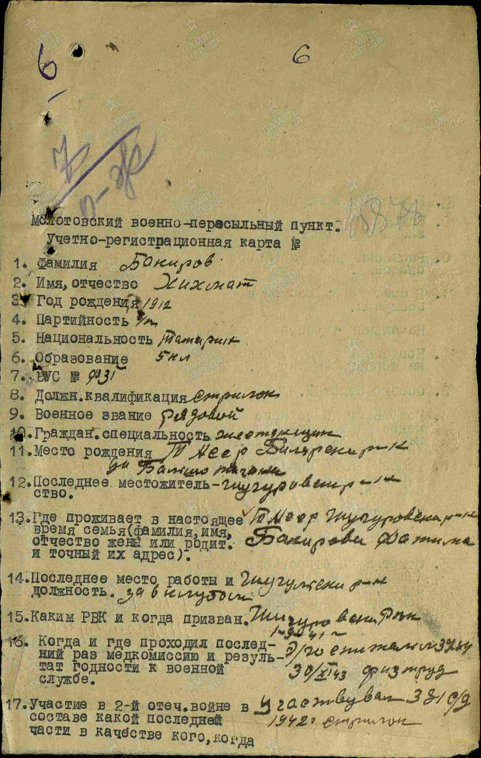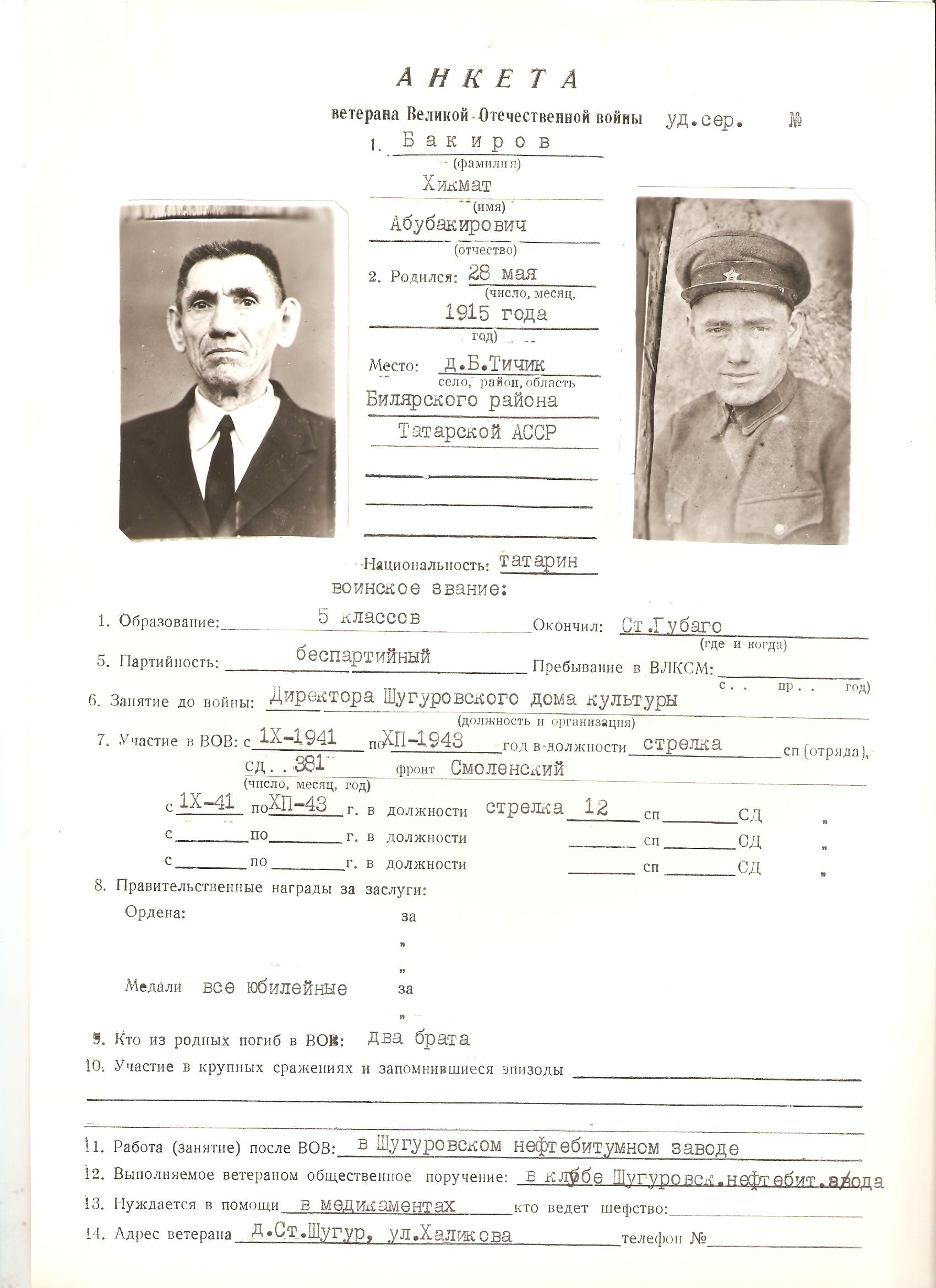 БАКИРОВ ХИКМАТ БАКИРОВИЧ (АБУБАКИРОВИЧ)