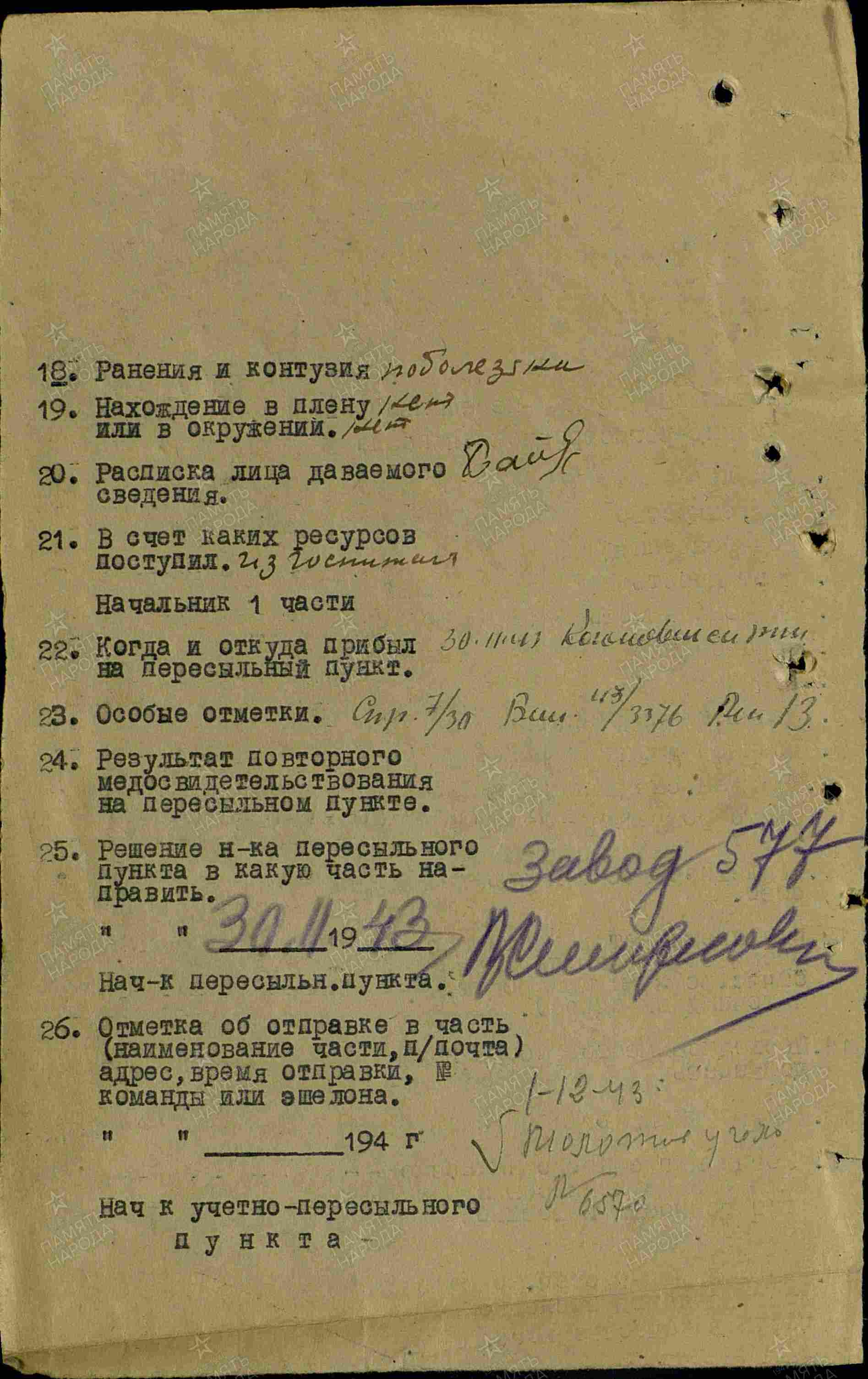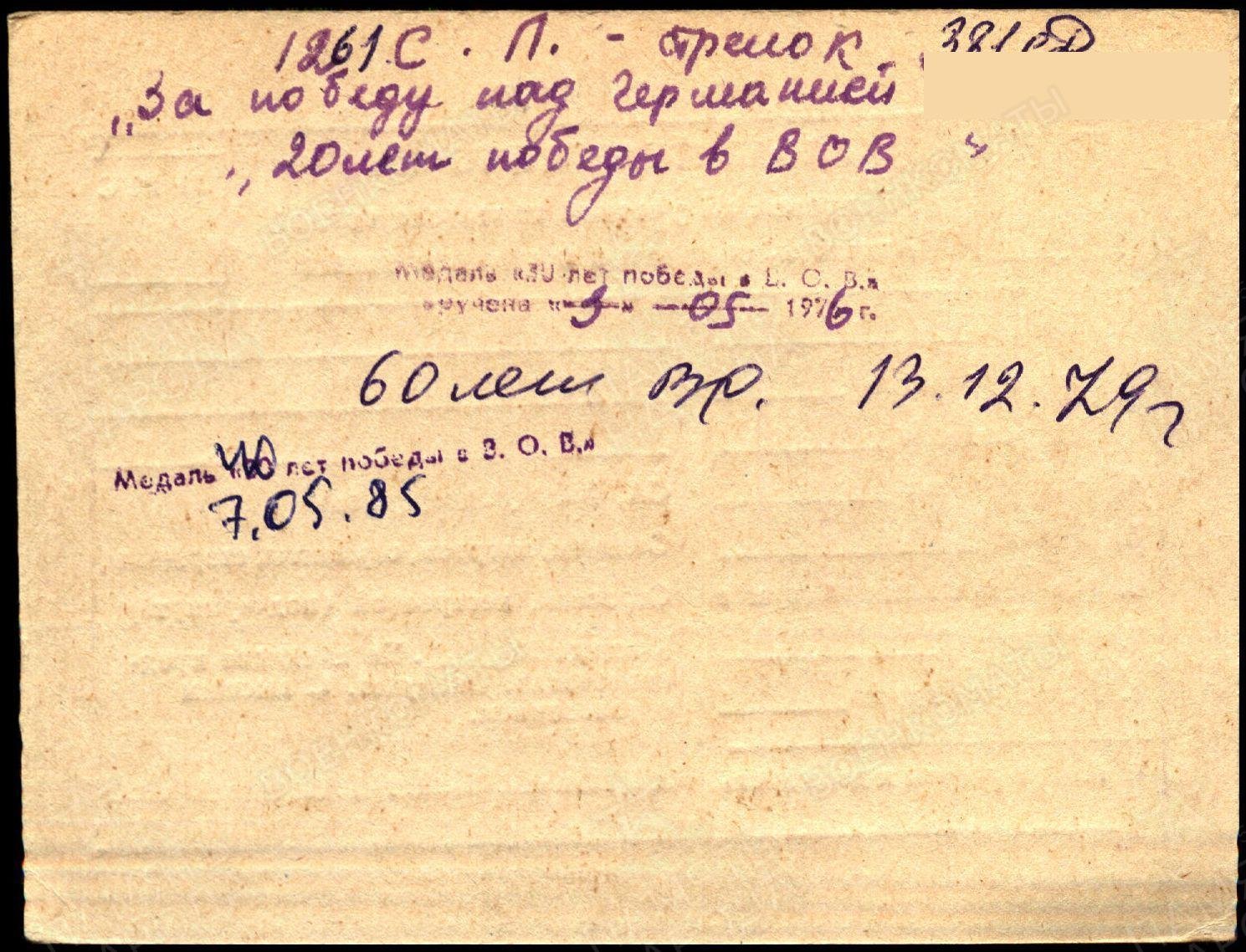 Призван: 01.09.1941г. Шугуровским РВК, ТАССР. В Великой Отечественной войне участвовал с 2.10.1942 по 12.1943 года. Воинское звание рядовой стрелок. Воинская часть 381 стрелковая дивизия. По болезни отправлен 01.12.1943г. на завод 577 Молотов уголь.