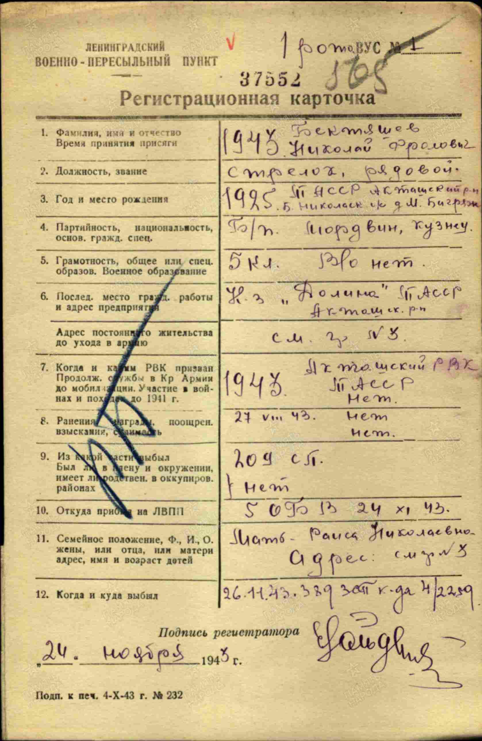 «8 ноября 1942 года мой дед был призван в армию Ново Шешминской районной комиссией.