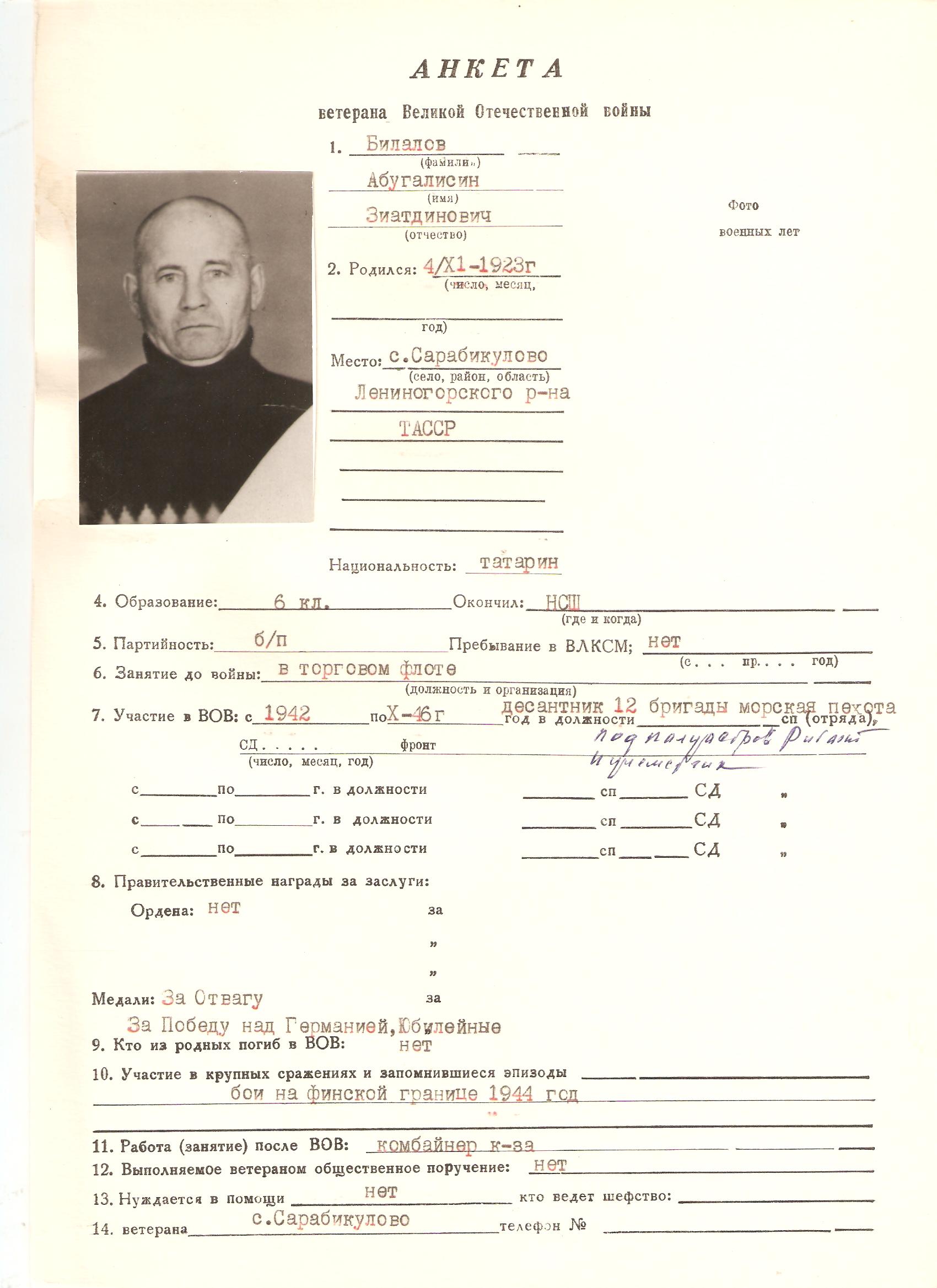 БИЛАЛОВ (БЕЛЯЛОВ) АБУГАЛИСИН ЗИАТДИНОВИЧ