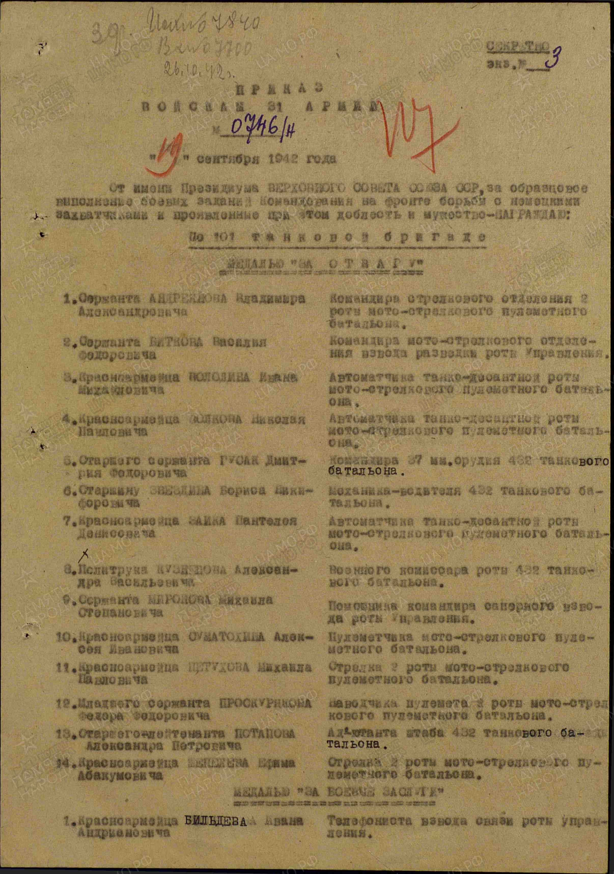 18 августа 1942 года представлен к медали «За боевые заслуги».