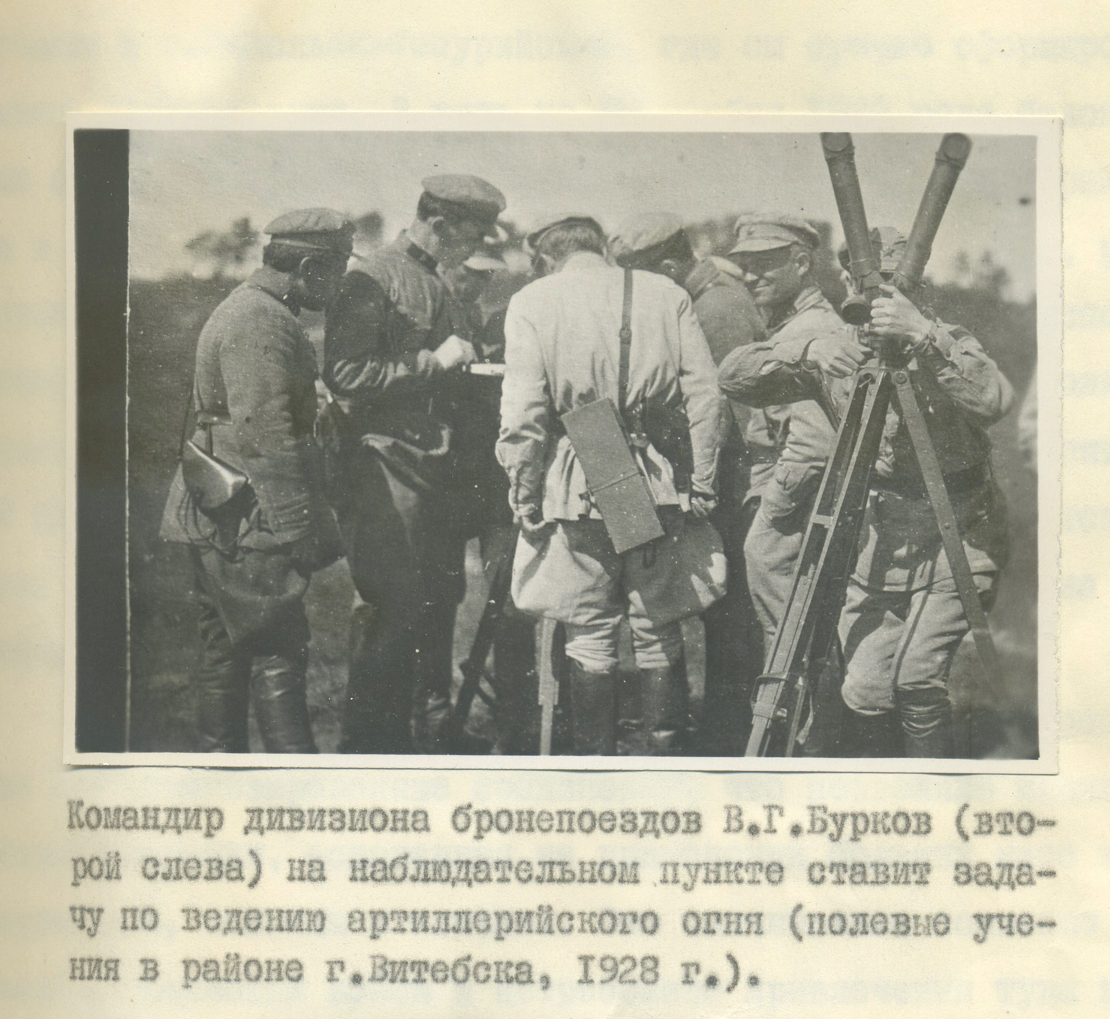С июля 1923 года В. А. Бурков — командир и комиссар бронепоезда № 5 Западного военного округа. После окончания артиллерийских КУКС в Ленинградском военном округе (октябрь 1924 — сентябрь 1925) — командир и комиссар бронепоезда № 4 Белорусского военного округа. С апреля 1926 г. помощник командира, затем командир 2-го дивизиона бронепоездов Белорусского военного округа.