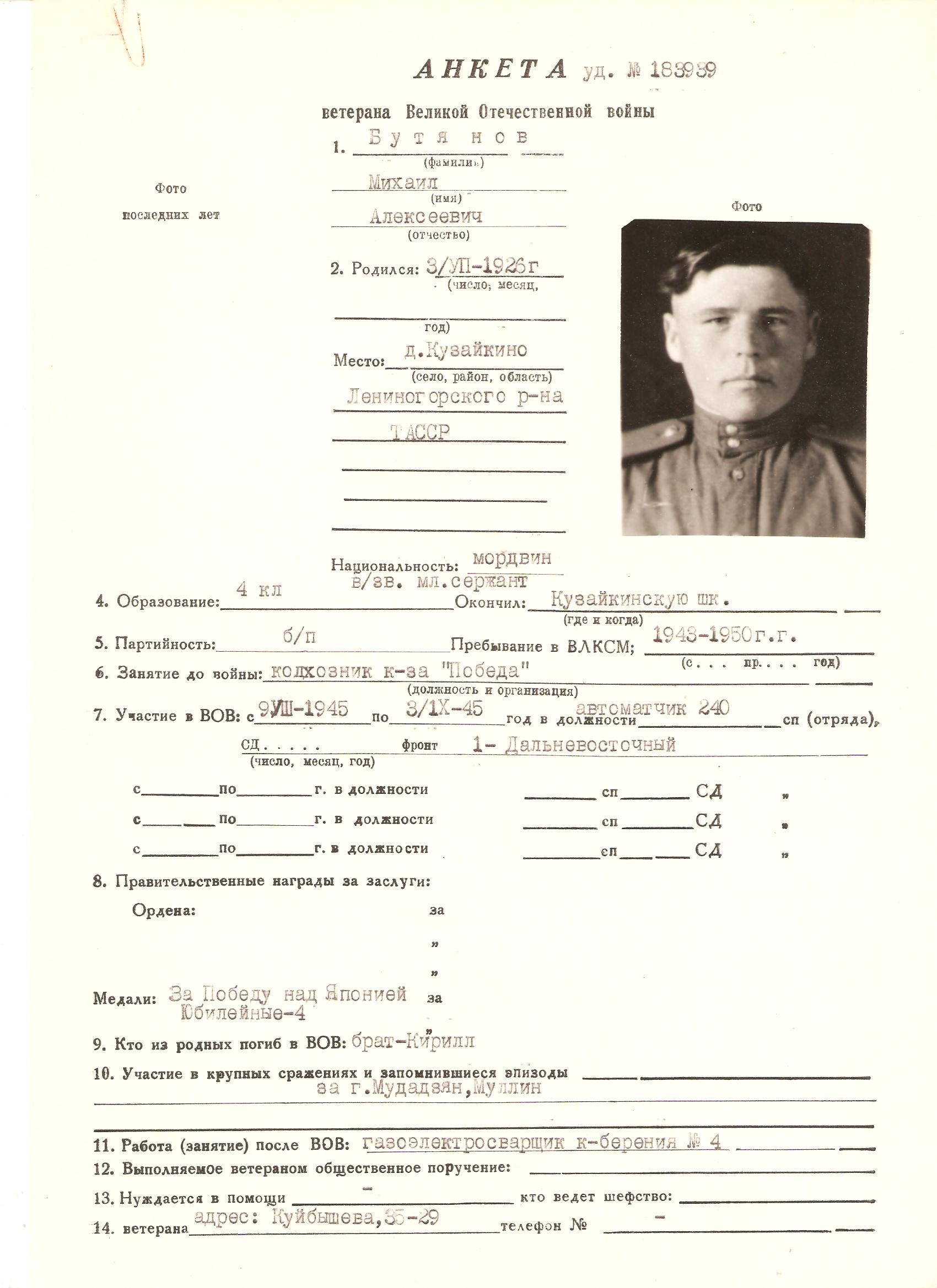БУТЯНОВ МИХАИЛ АЛЕКСЕЕВИЧ