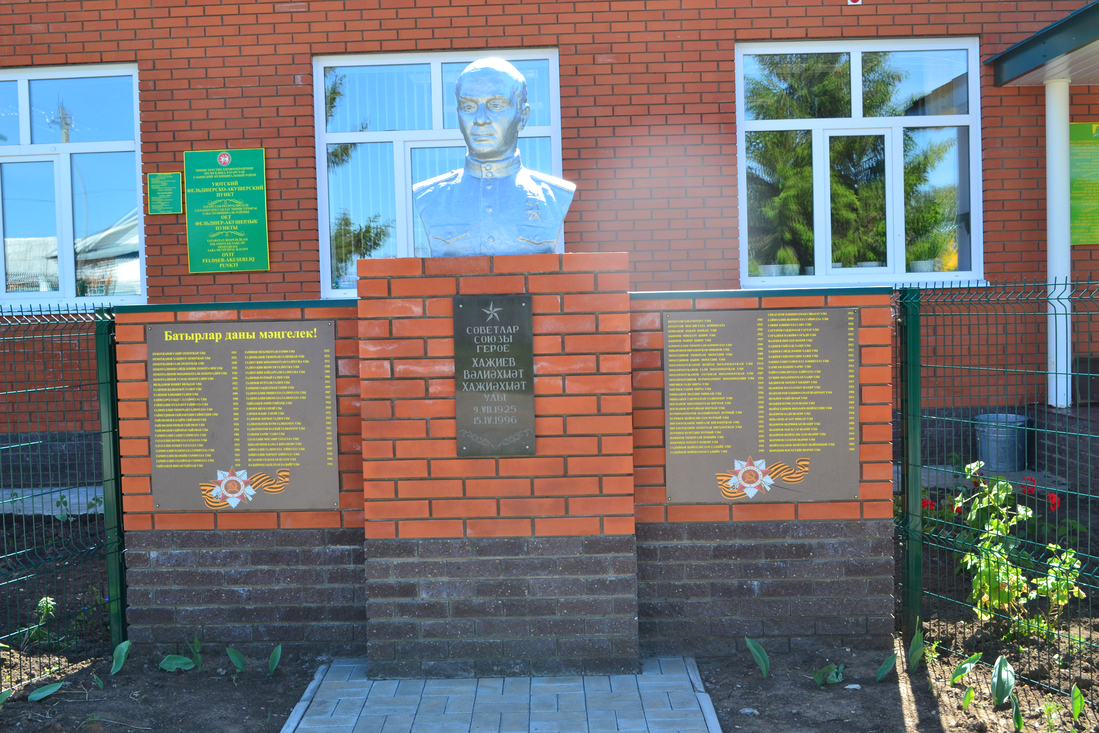 Хазиев Вали Хазиахметович – рядовой, стрелок. Родился в 1925 году в селе Уют Сабинского района. В1943 году был призван в армию, в боях принимал участие с июня 1944 года. Звание Героя Советского Союза получил 22 июля 1944 года. Умер 1996 году.