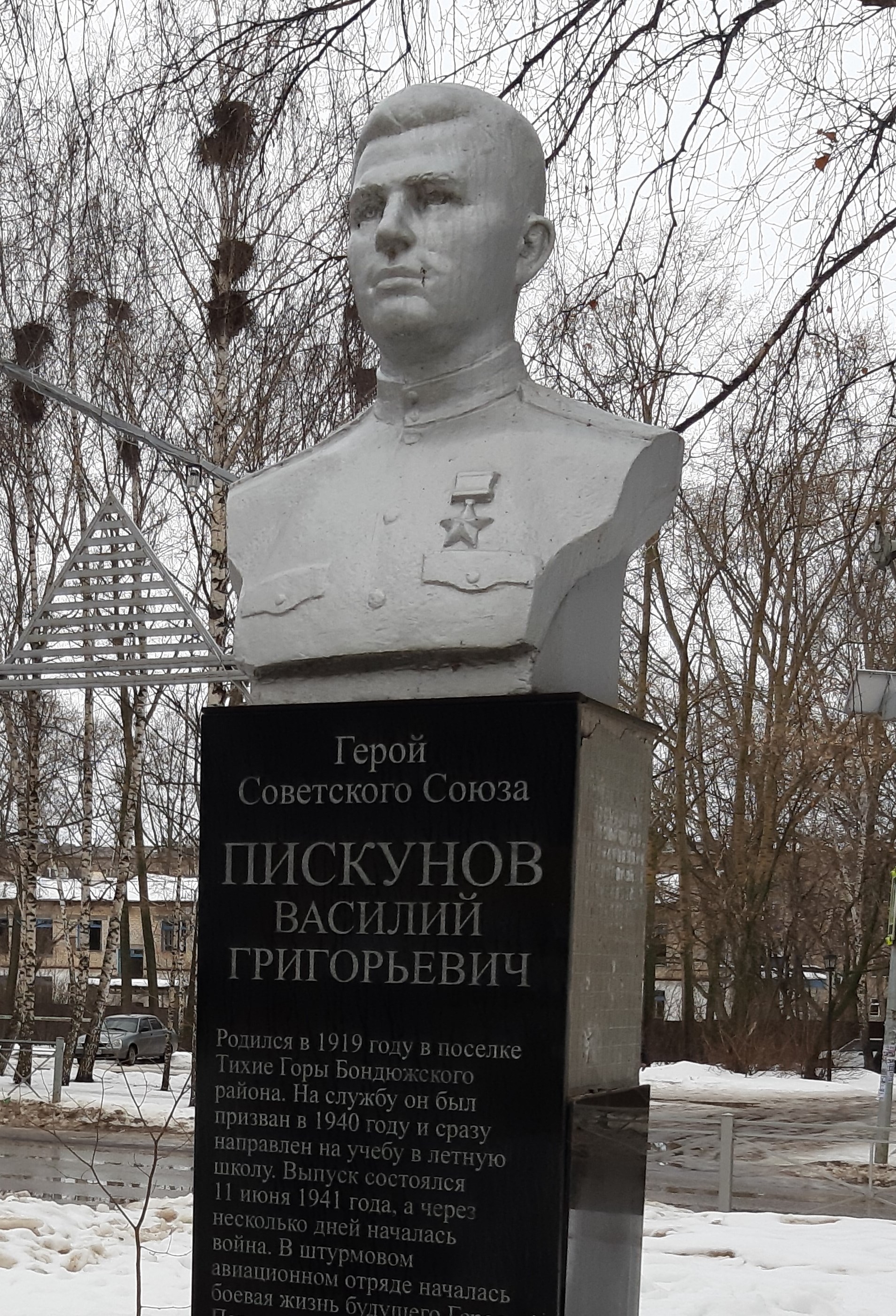 БЮСТ ГЕРОЯ СОВЕТСКОГО СОЮЗА ПИСКУНОВА ВАСИЛИЯ ГРИГОРЬЕВИЧА Район: МенделеевскийПрикреплённые изображения: Мемориалы Памяти Опубликовано 13 марта, 2020 - 20:31 пользователем Краеведческий м...