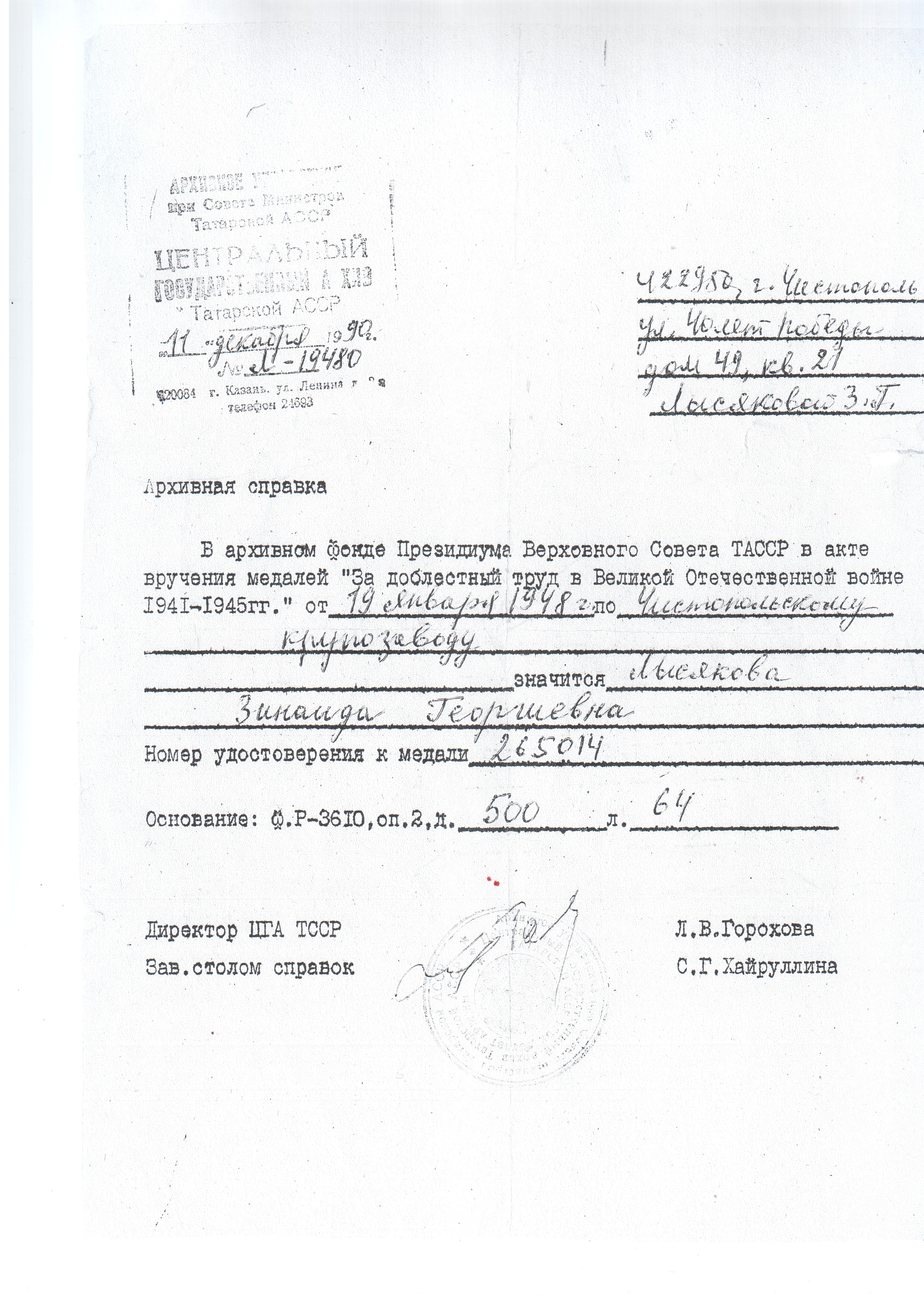 ЦАРЕВА (ЛЫСЯКОВА) ЗИНАИДА ГЕОРГИЕВНА