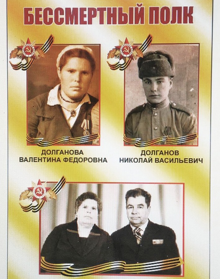 Долганова (Железнова) Валентина Фёдоровна родилась 14 апреля 1928 года также в с. Покровском Мамадышского района. С юных лет помогала старшим, работала в колхозе, пахала на быках, валила лес, стойко выдержала все испытания военного времени, пережила голод и холод, лишения. Ее средний брат Железнов Михаил Федорович, 1923 года рождения, окончил школу разведчиков, был младшим сержантом, пропал без вести в первом же бою в ходе Сталинградской битвы, ставшей началом коренного перелома не только в ходе Великой Отечественной войны, но и всей Второй мировой войны в целом.