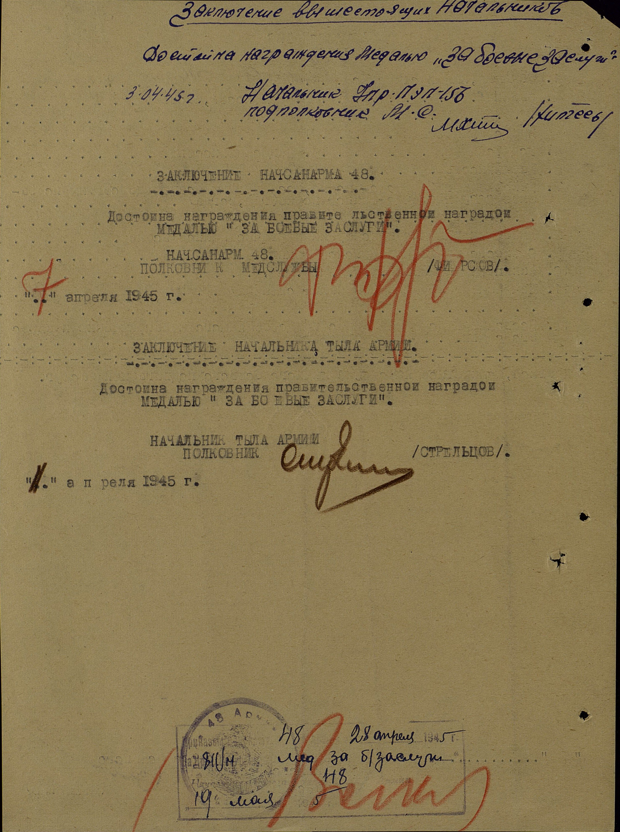 Награждена медалью «За боевые заслуги».