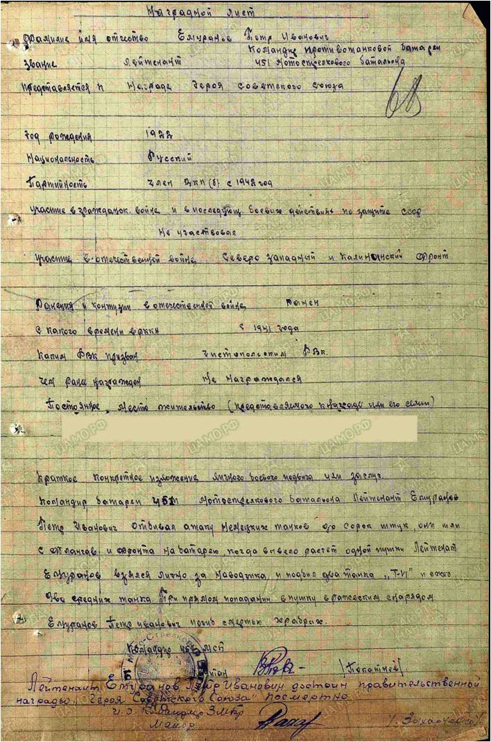 ЕМУРАНОВ ПЕТР ИВАНОВИЧ (15.05.1922-1943)