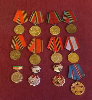 Среди наград особую ценность имеют медаль «За отвагу», которая вручалась за исключительно личную храбрость, проявленную в бою; медаль «За победу над Германией в Великой Отечественной войне 1941-1945 гг» и в 1985 году награжден орденом Отечественной войны 2-й степени и другими юбилейными медалями..
