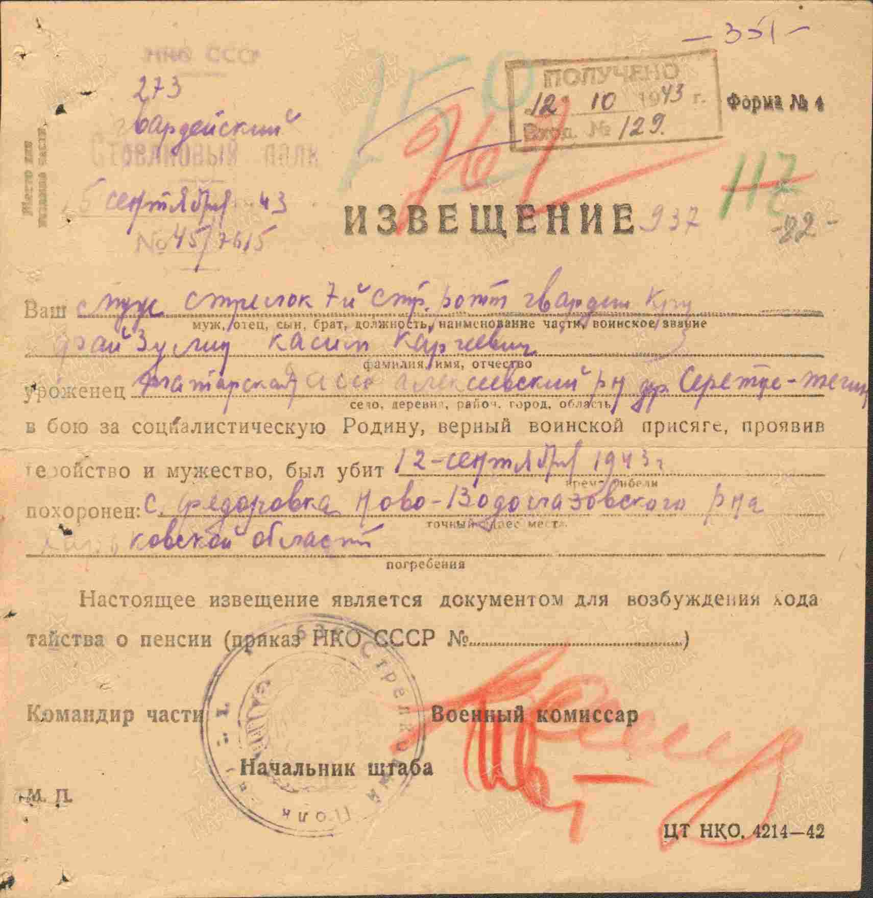 ФАЙЗУЛЛИН Касим Каримович, 1906, с. Средние Тиганы. Мобилизован 13 июля 1941 Алексеевским РВК. Красноармеец. В боях перенёс два ранения. В 1943 – гв. красноармеец, 273 гв. СП 89 гв. СД 6 гв. А Воронежского фронта, 69 А Степного фронта. Погиб 12 сент. 1943, с. Фёдоровка, Ново-Водолажский р-н, Харьковская обл., УкрССР.