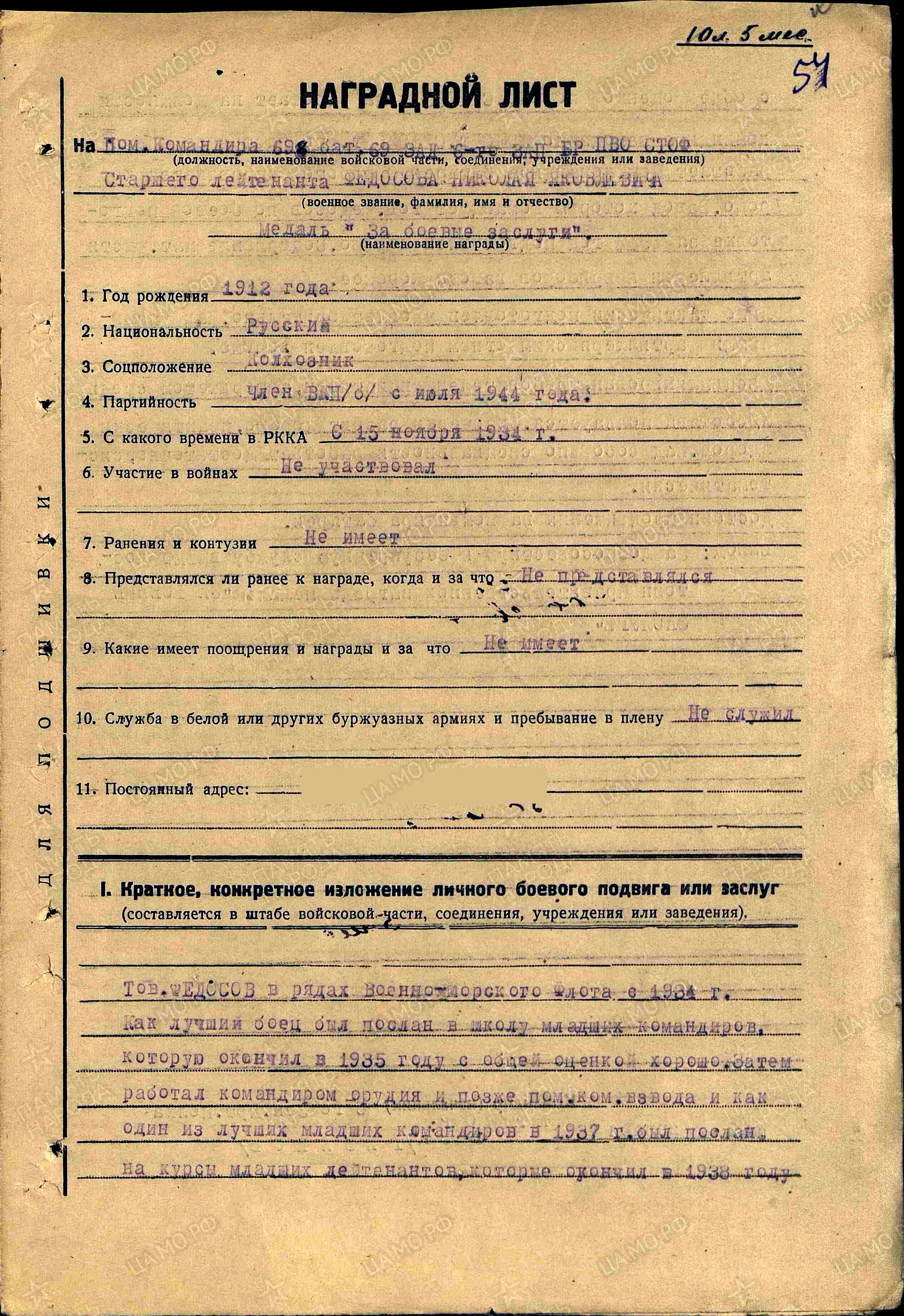 ФЕДОСОВ Николай Яковлевич, 1912, с. Шама. Мобилизован в РККА 25 сент. 1934. Служил в зенитной артиллерии Тихоокеанского флота на Дальнем Востоке. В 1935 окончил школу младших командиров, служил ком. орудия, пом. ком. взвода. В 1938 окончил курсы мл. лейтенантов. Служил ком. взвода, пом. ком. батареи. Ст. лейтенант/ капитан, ком. 696 батареи 69 отд. ЗенАДн ПВО 6 ЗенАП/ 300 БрПВО Северной Тихоокеанской флотилии, 102 отд. ЗенАДн СТОФ. Член ВКП(б) с 1944. Вышев отставку 8 дек. 1954. Награждён двумя медалями «За боевые заслуги», медалью «За победу над Японией», орденами Красной Звезды (1950), Красного Знамени (1955).