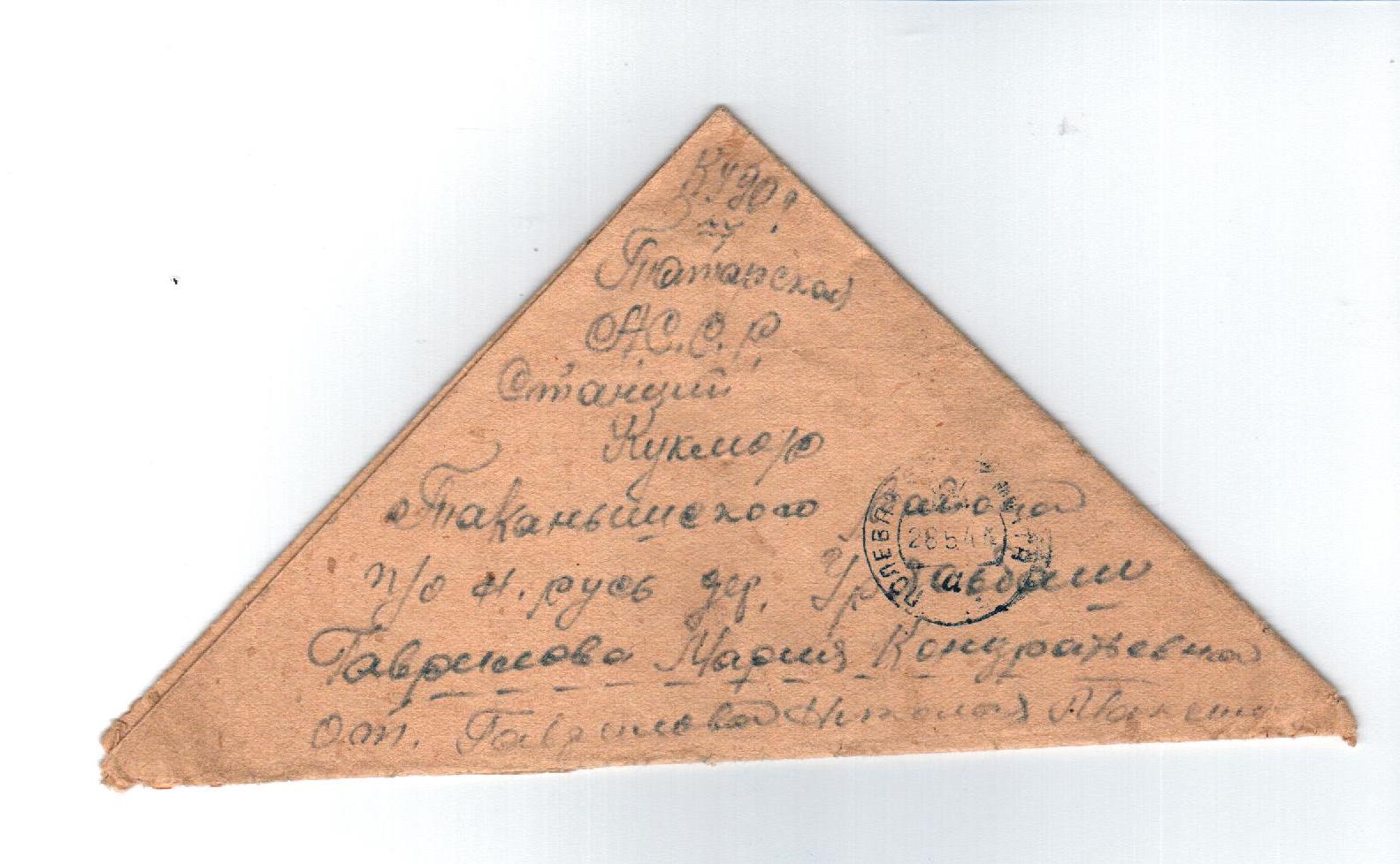 Письма с фронта от Гаврилова Николая Максимовича из д.Урясьбаш Ст.Кукмор Таканышского района родным.