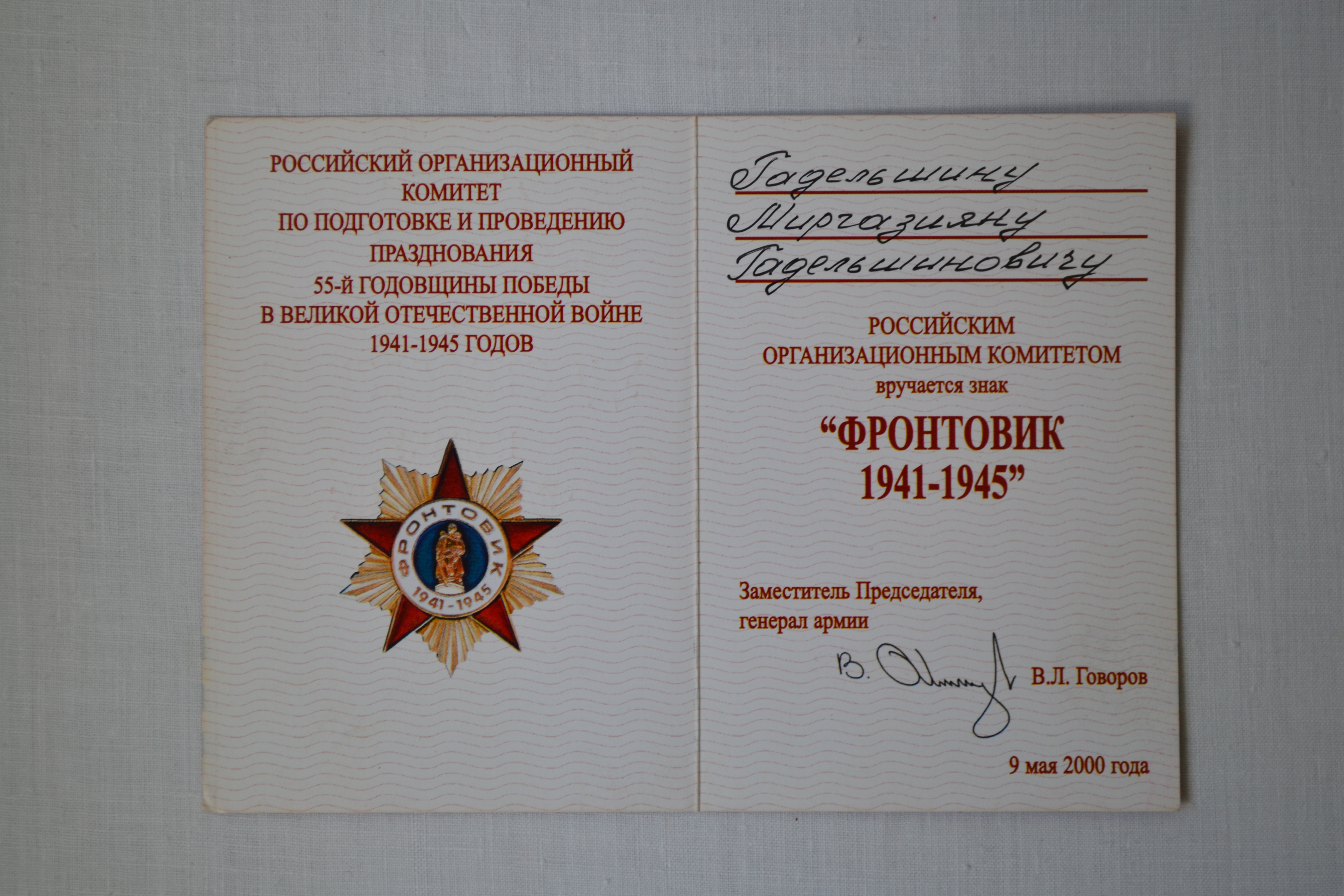 Награды: Общий Российский отличительный знак «Фронтовик»;