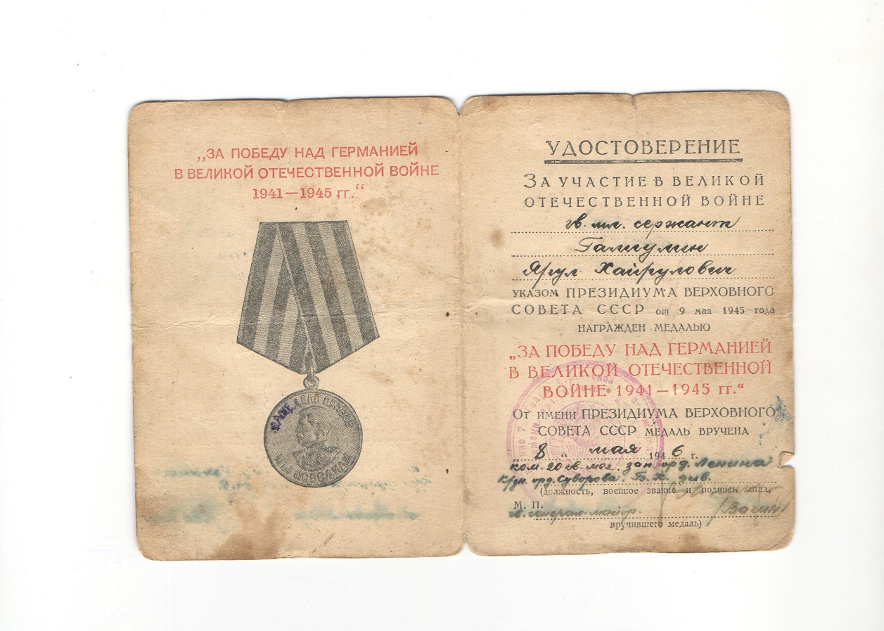 - Уд-е к медали «За победу над Германией в Вов 1941-1945гг.»