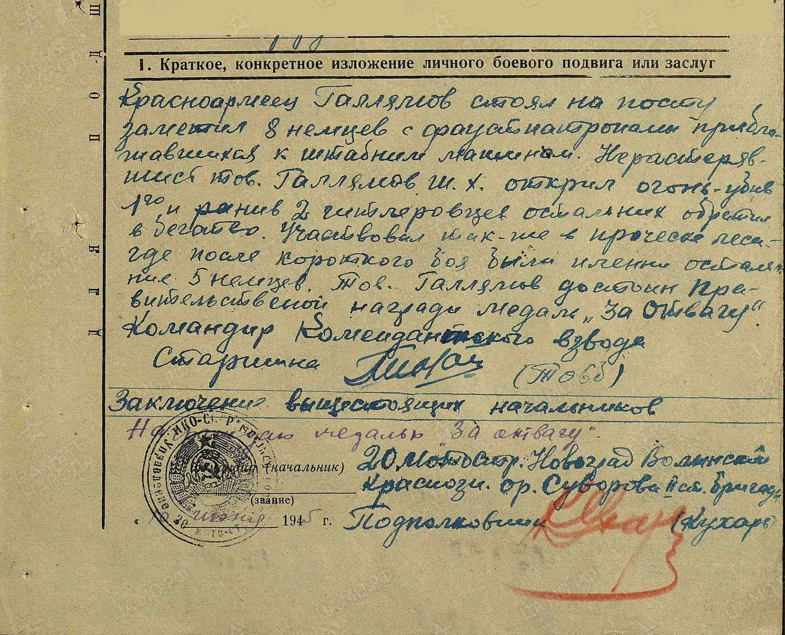 10.06.1945 г. награжден медалью «За отвагу».