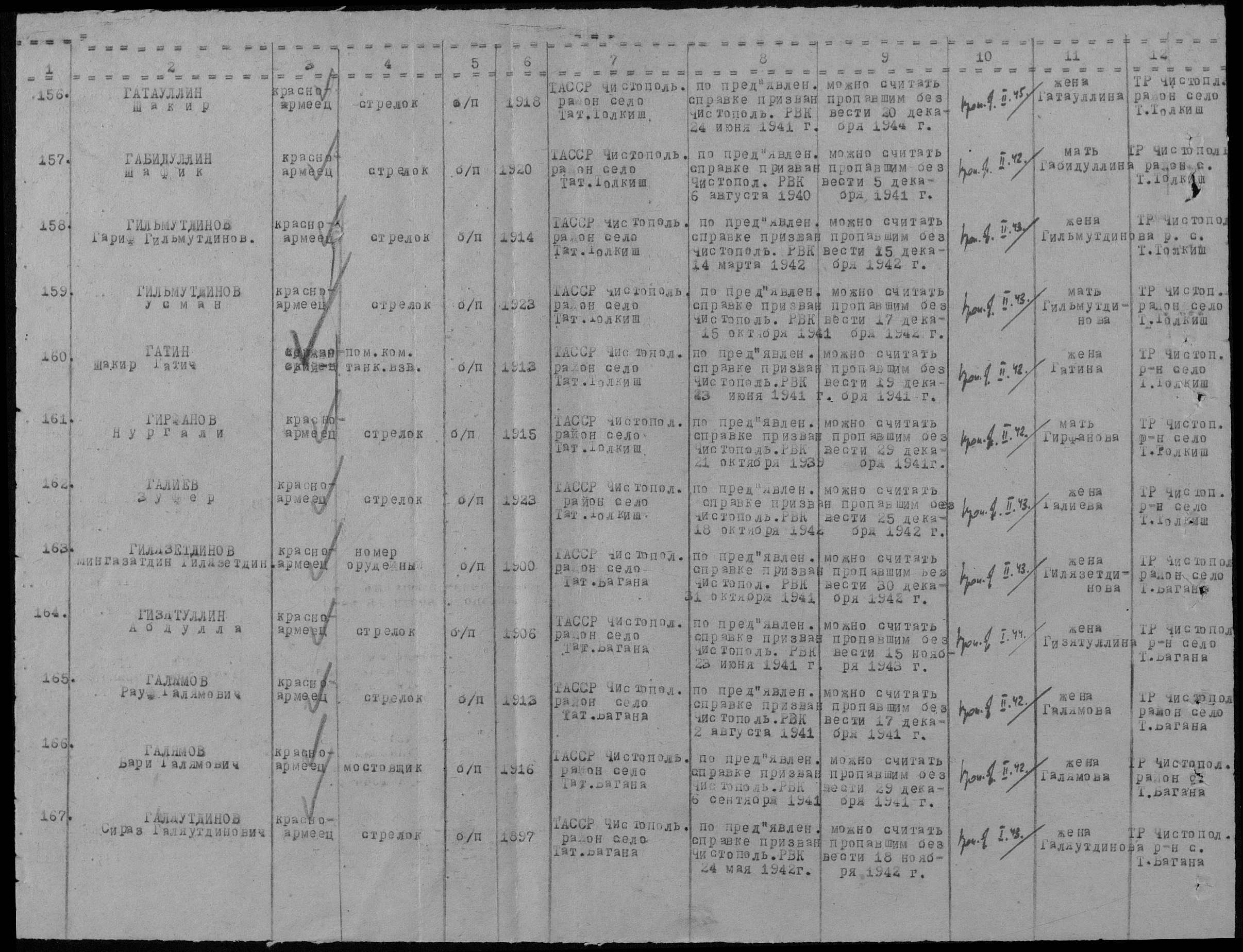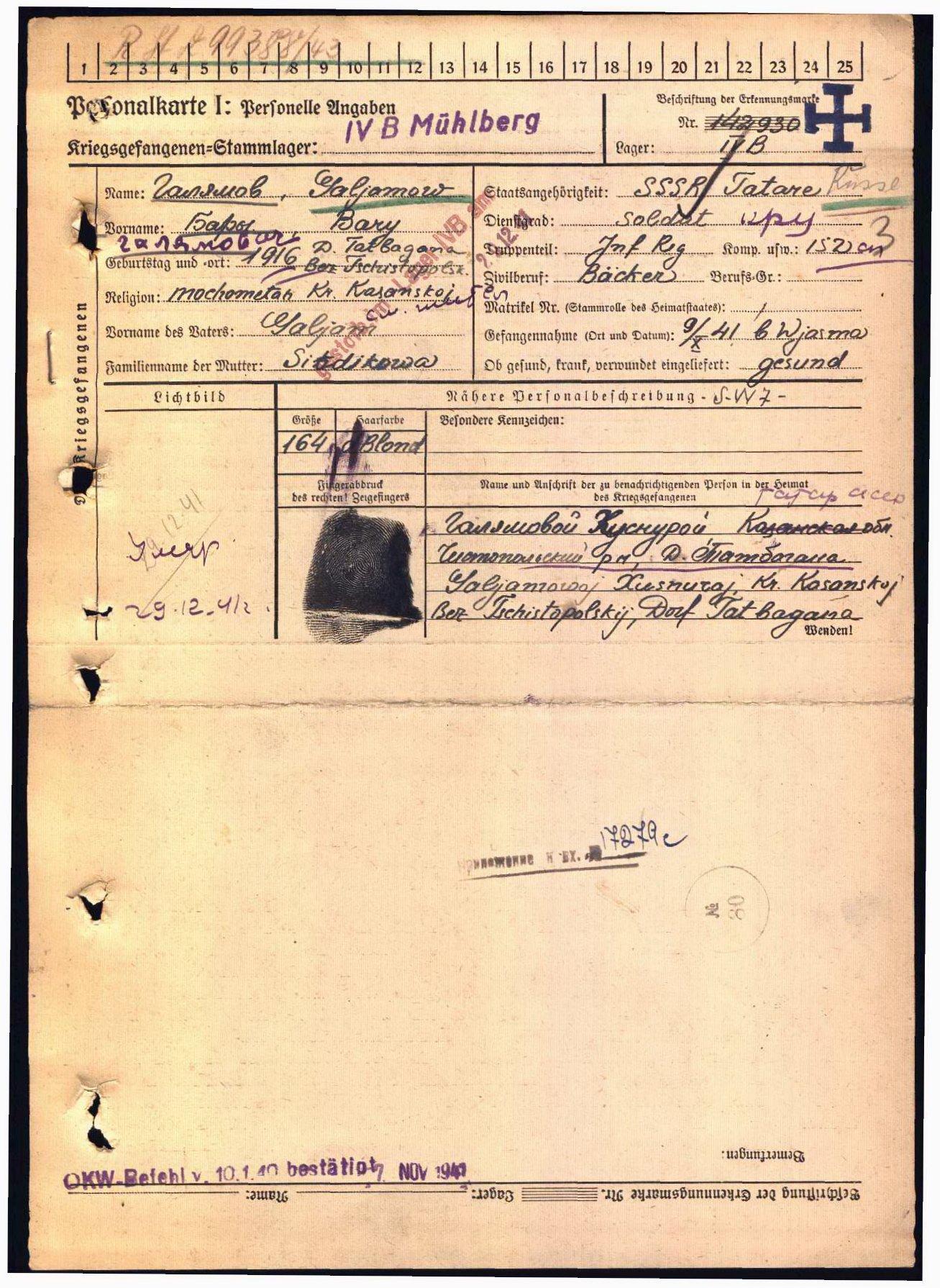 Родился в 1916 г. в с. Татарская Багана Чистопольского уезда Казанской губернии. Призван 6 сентября 1941 г. Чистопольским РВК. Пленен под Вязьмой 9 октября 1941 года. Содержался в шталаге IV B. Лагерный номер 142930. Погиб в плену 29 декабря 1941 года. Место захоронения: Мюльберг/Нойбурксдорф.