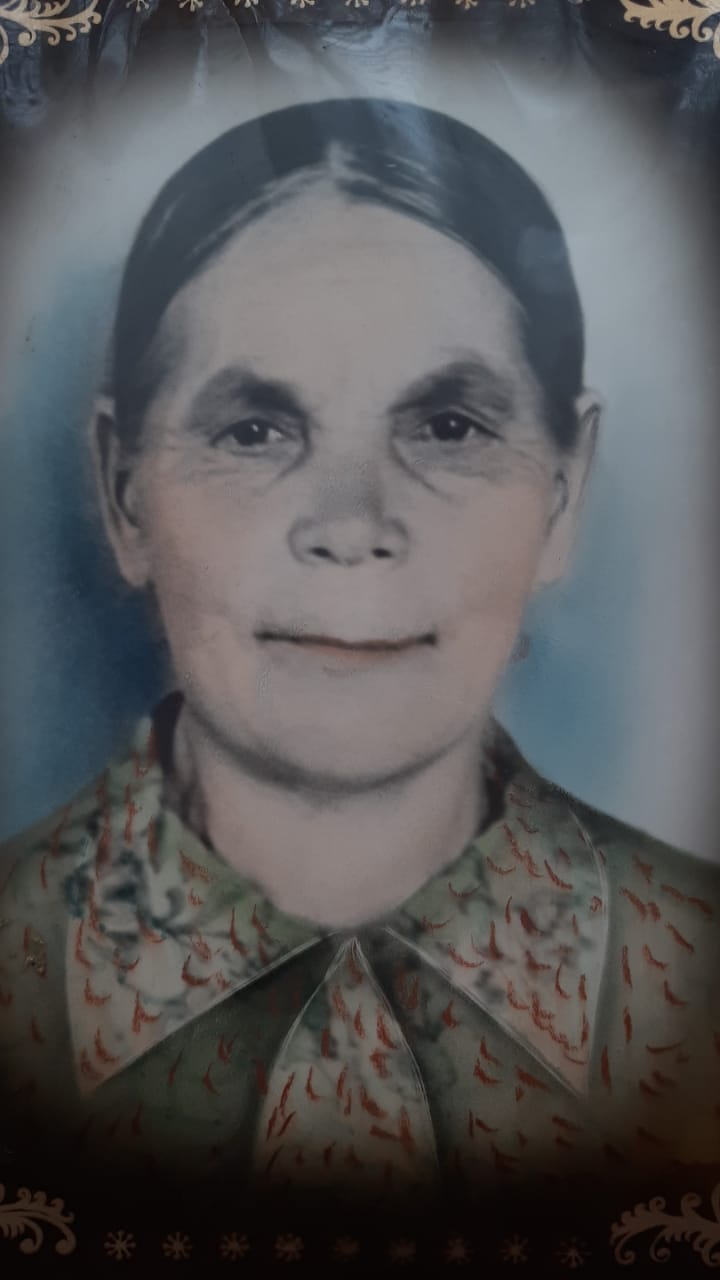 Труженица тыла. Родилась 09.07.1914г. в с. Ургагары Алькеевского района РТ. Во время Вел. Отеч. войны 1941-1945гг. и после войны работала в колхозе разнорабочей (на ферме, на поле). Оттуда вышла на пенсию. Вырастила 7 детей, 22 внуков.