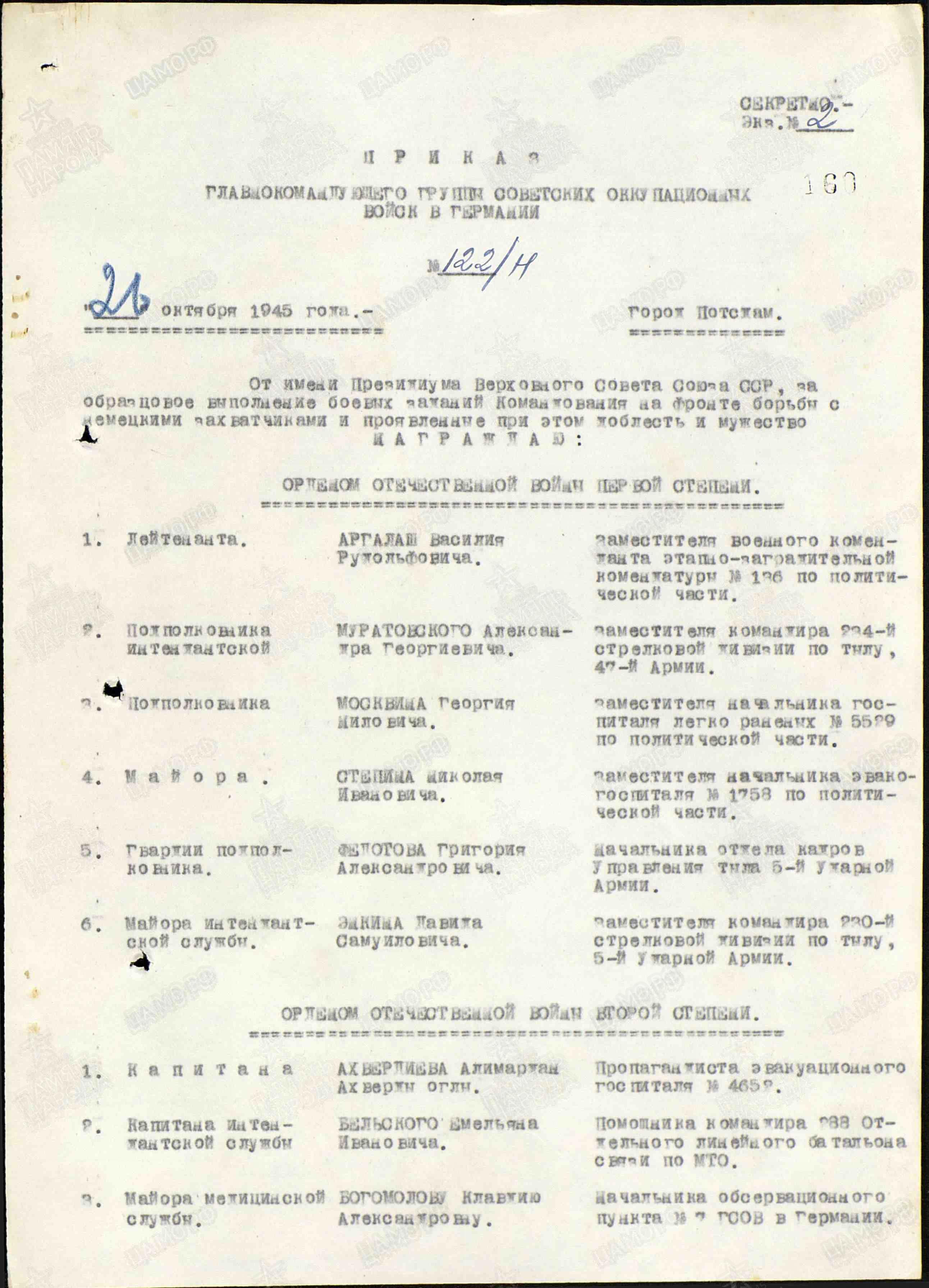 Награжден орденом «Красной Звезды», орденом «Отечественной войны 2-й степени», медалью «За победу над Германией в Великой Отечественной войне 1941 - 1945 гг.».