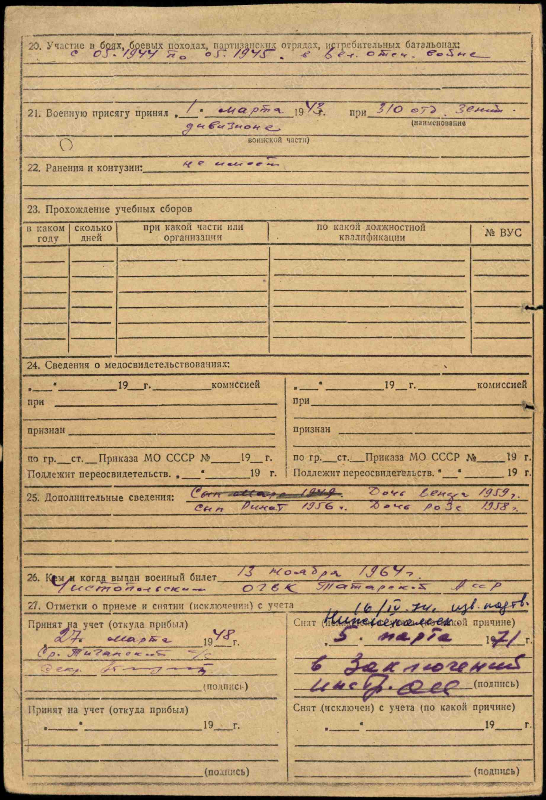 ГИЛЯЗОВ Исхак Имамович, 1925, с. Нижние Тиганы. До призыва в армию работал в к-зе «1 мая». Мобилизован Алексеевским РВК 17/ 26 янв. 1943. С янв. 1944 воевал на 2 и 1 Украинском фронте. Красноармеец, орудийный номер 1357 ЗенАП 26 ЗенАД/ радиотелеграфист 1342 ЗенАП. Участник освобождения Украины и Польши. Демобилизован 10 марта 1948 в звании «ефрейтор». Награждён орденом Отечественной войны 2 ст. (1985).