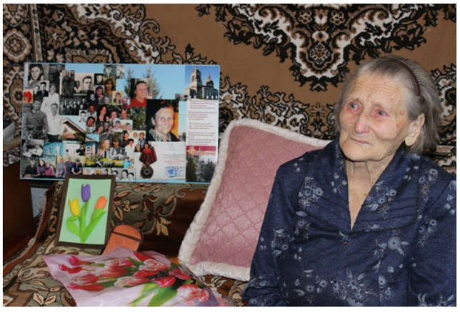 Труженица тыла, ветеран труда, инвалид второй группы, она прожила долгую и нелёгкую жизнь. Во время Великой Отечественной войны подростком с 1942 года начала трудовую деятельность на швейной фабрике в городе Тетюши: шила гимнастерки и шинели, стирала бинты, гимнастёрки, фуфайки, чтобы из уцелевшего материала выкроить и сшить одежду для солдат.